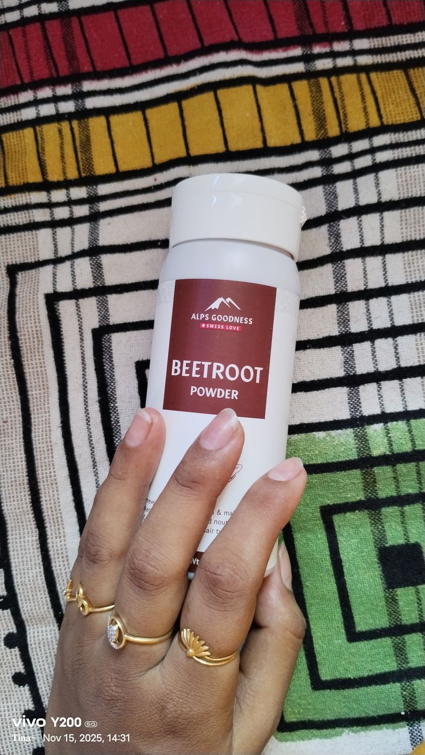 I am very happy to this Alps goodness powder.. this is very use full to my dul and tan skin.. this review I am using this product after written.. and I am order also 5 Alps goodness powders ofter using this beetroot powder.. and it was pure natural products ...