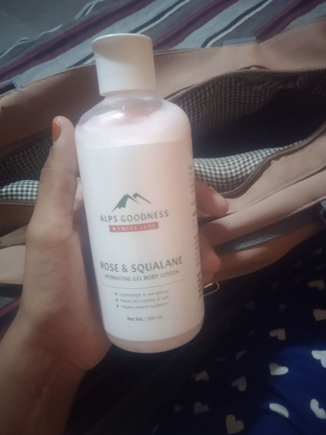 Here's the review rewritten in an Islamic tone: "Alhamdulillah, I'm loving the Alps Goodness Body Lotion! . This lotion keeps my skin hydrated and moisturized, and it's perfect for dry skin. The natural ingredients like rose and squalene are a blessing! HIGHLY RECOMMENDED!!!