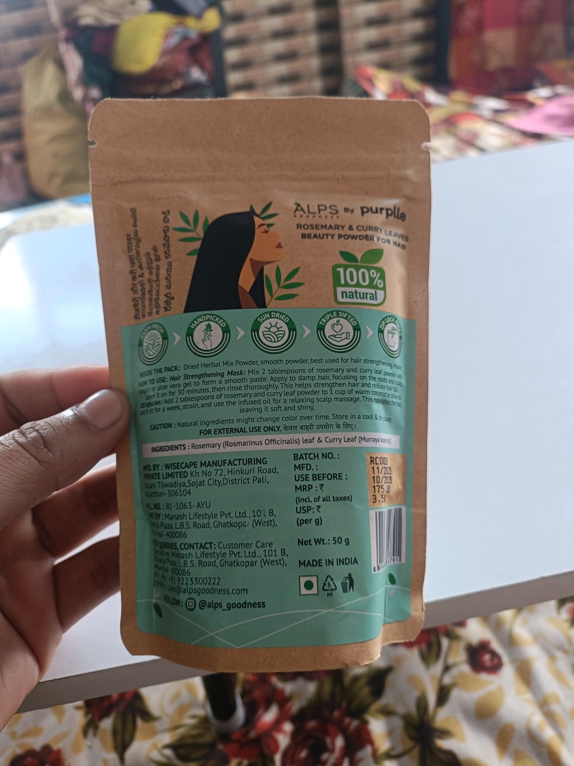 Alps GoodnessRosemary & Curry Leaf Powder (50 gm) | Made with Premium Rosemary Leaves | Organic Rosemary Leaf | Kariveppila | 100% Natural | Boosts Hair Growth & Reduces Hair Fall | Prevents Greying | No Chemicals, No Preservatives | Hair Mask