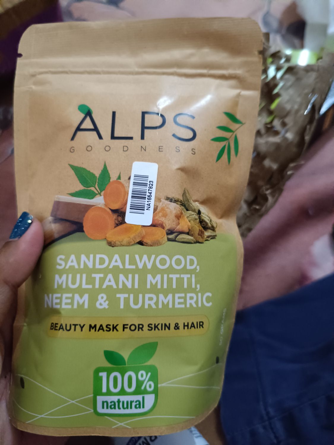 Alps goodness sandalwood, multani mitti, neem , turmeric powder face and hair mask