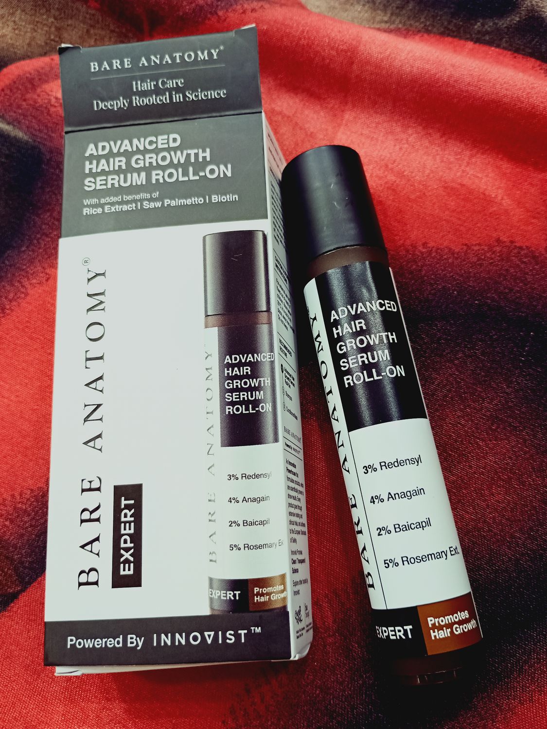 Bare anatomy advanced serum is best formula for hair growth. It's really work for hair growth and stop hair fall. I am feeling for hair fall circulation. It's new innovative product of hair growth serum roll on . It's easy to use on scalp and no westage and stick on hand . I appreciate with this product for buying this