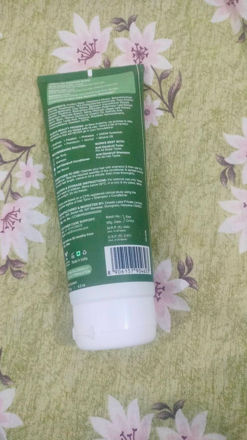 I've been using the Bare Anatomy Anti-Dandruff Hair Conditioner and it works well for keeping hair soft and manageable. The texture is smooth and it spreads easily on the hair lengths. It helps reduce flakes and dryness while also controlling frizz. After using it regularly, my hair feels more moisturized and looks healthier. Overall, it's a good conditioner if you want smoother hair with some help for dandruff.