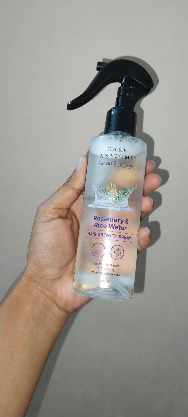 Bare Anatomy Rosemary & Rice Water Hair Growth Spray feels refreshing and lightweight on the scalp. It absorbs quickly, doesn’t feel greasy, and leaves hair soft and fresh. With regular use, it helps reduce hair fall and improves hair texture. Great natural, gentle option for daily hair care.