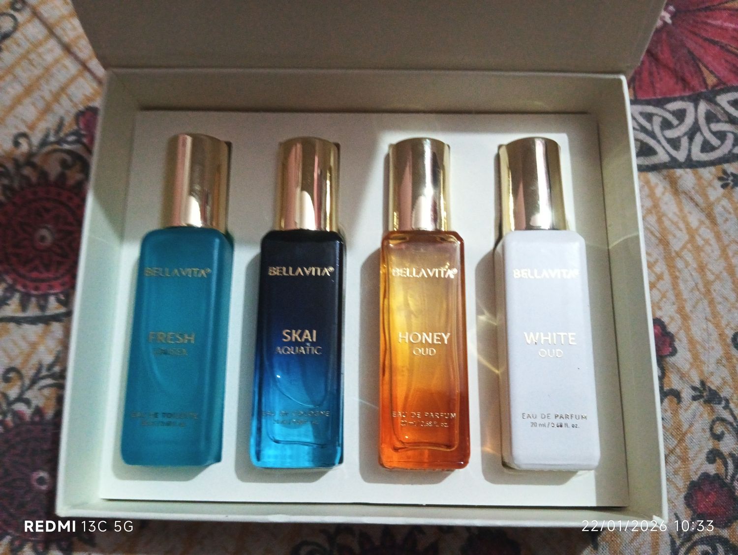 Bella VitaLuxury Long Lasting Unisex Perfume Gift Set | 4 x 20 ml Perfume for Men & Women | Woody Aquatic Sweet Premium Fragrance Scent | SKAI FRESH WHITEOUD HONEY OUD