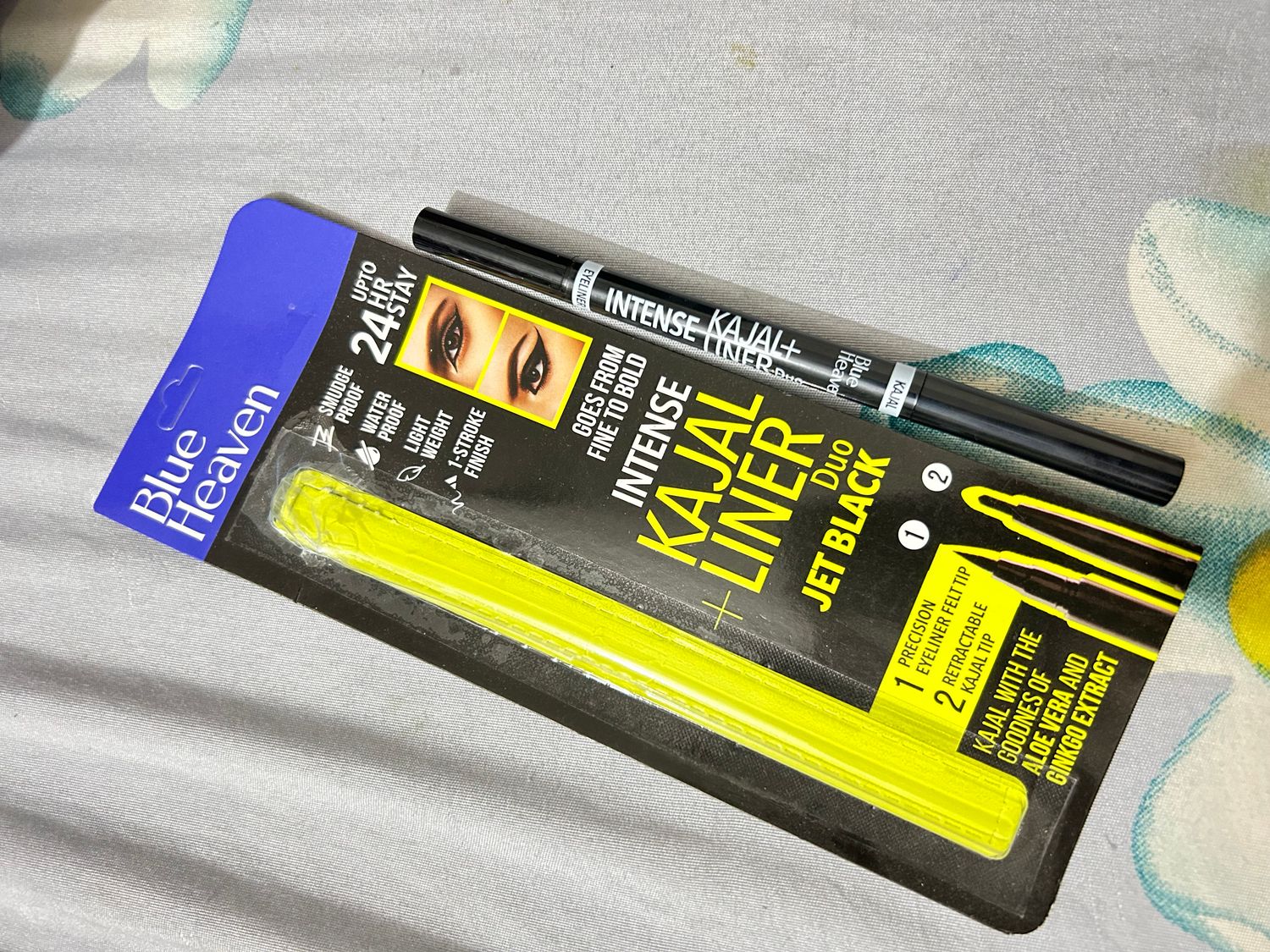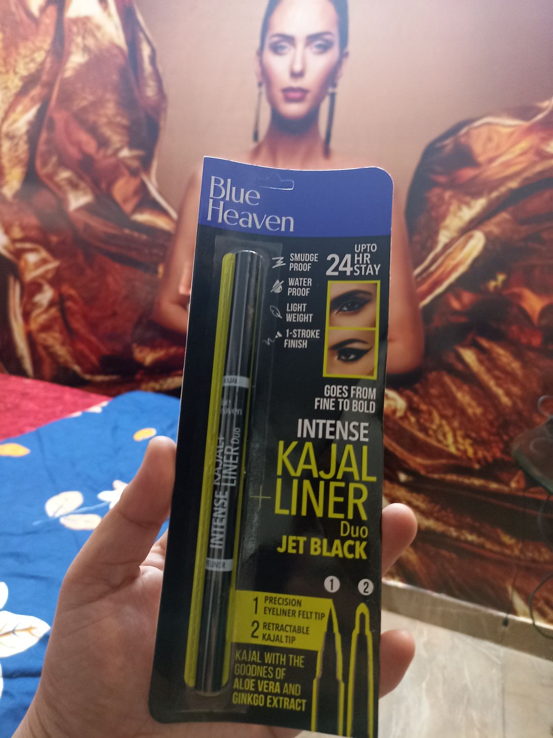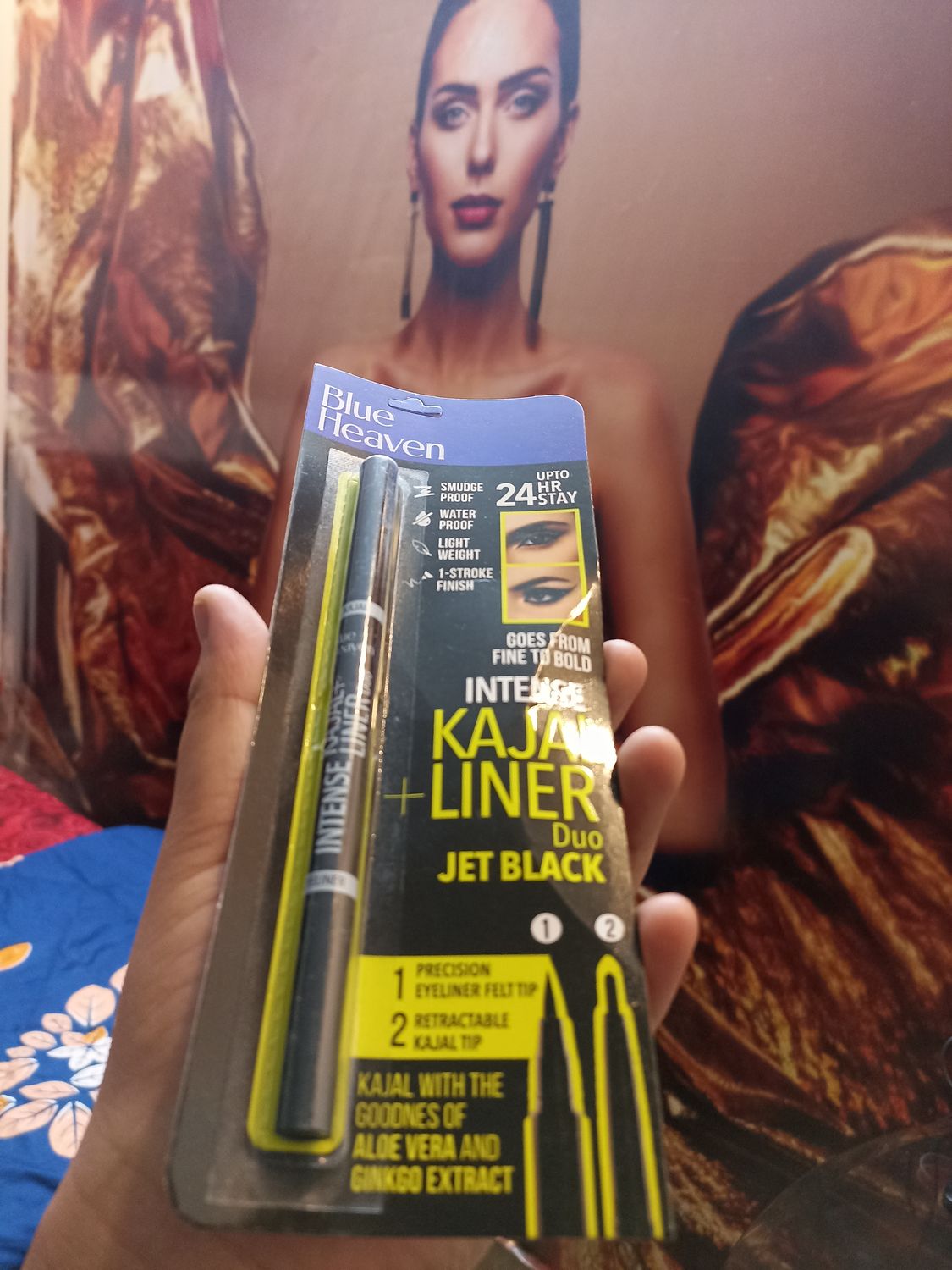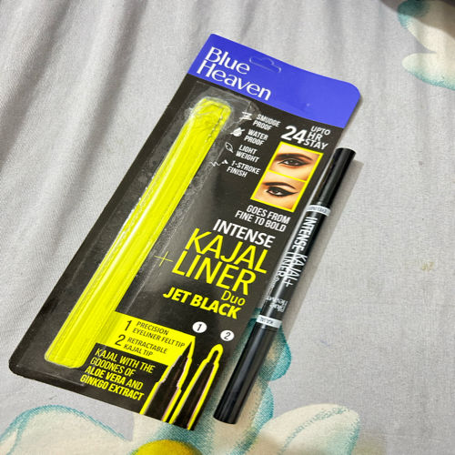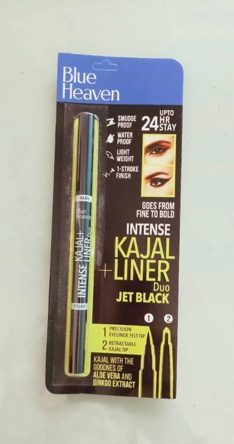 This Blue Heaven Intense Duo Eye Kajal plus Liner is really amazing both at each end of the pen. Kajal is very intense and gives more attention to face face applied. For beautiful eye makeup these both helps very much. Blue heaven product is very good quality product and value for money.