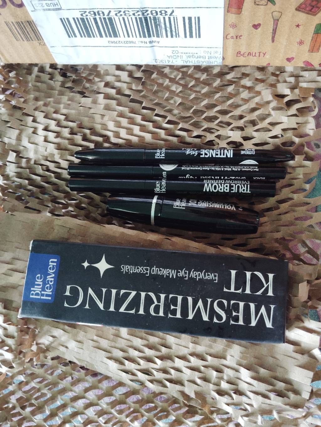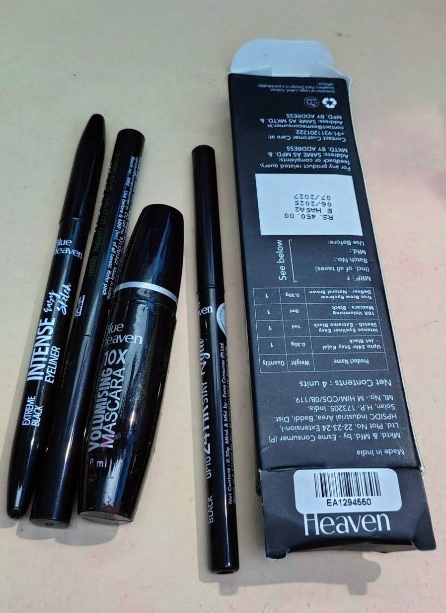 Blue Heaven Mesmerising Eye Kit Combo Pack of 4 | Kajal, Mascara, Eyeliner & Brow Definer |Long Lasting, Smudge proof & Waterproof, Matte finish for Naturally fuller look (0.6 gm + 9 ml)