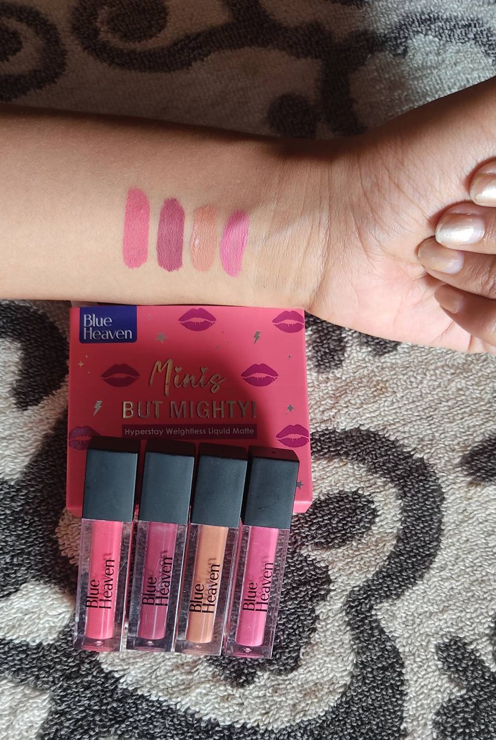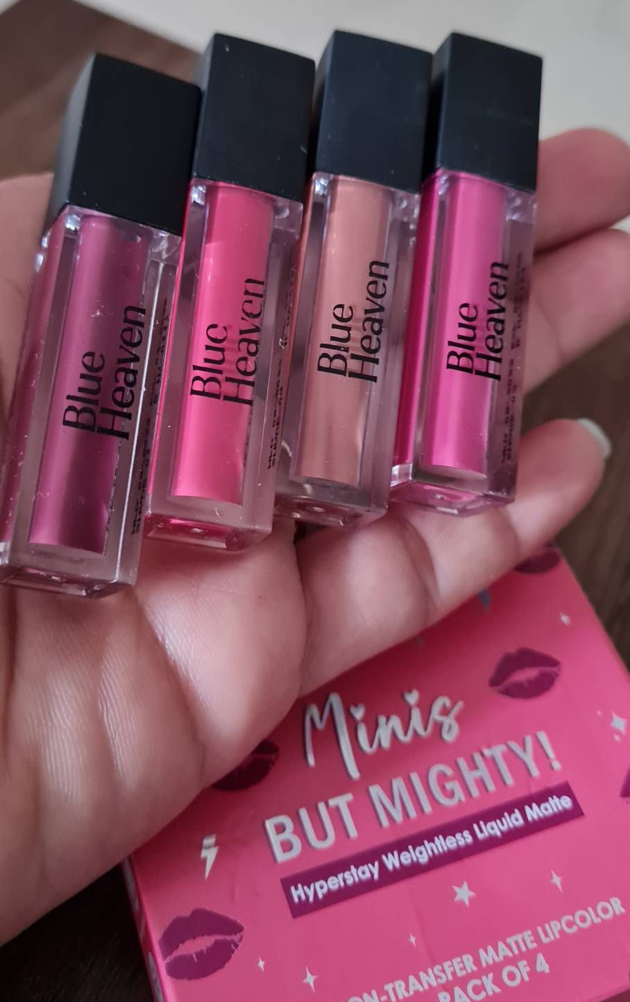 All 4 shades are amazing, it will go with any outfit and any look. this formula is long lasting, transfer proof, moisturizing. Love this mini lip colors from Blue Heaven.