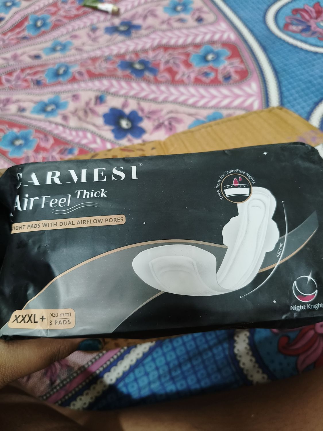 Carmesi Air Feel Thick Night Sanitary Pads | 8 XXXL+ Extra-Long Pads With Wide Back | Super-Soft & Cushiony | All-Night Stain Protection | No Leaks | Airy & Sweat-Free | Non-Toxic (8 Pads)