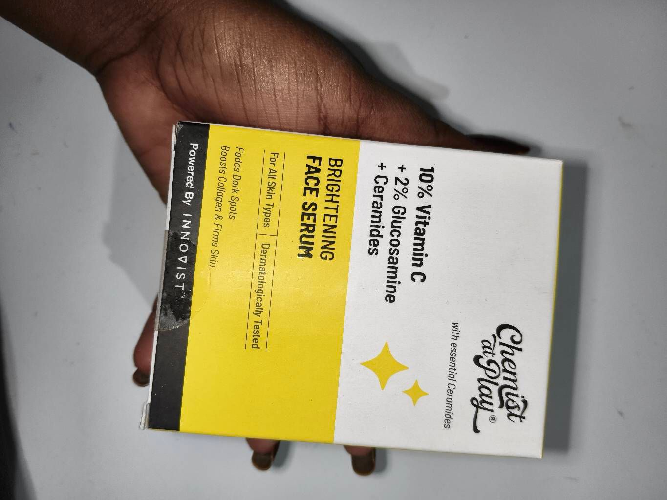 This Chemist at Play Brightening Face Serum is a game-changer for my Delhi skincare routine. The 10% Vitamin C + 2% Glucosamine blend brightens dark spots, hydrates deeply with ceramides, and leaves skin firm and glowing without greasiness.Perfect for humid weather—absorbs instantly and layers well under makeup for that fresh, even look. Love the dermat-tested formula for daily use! Highly recommend.