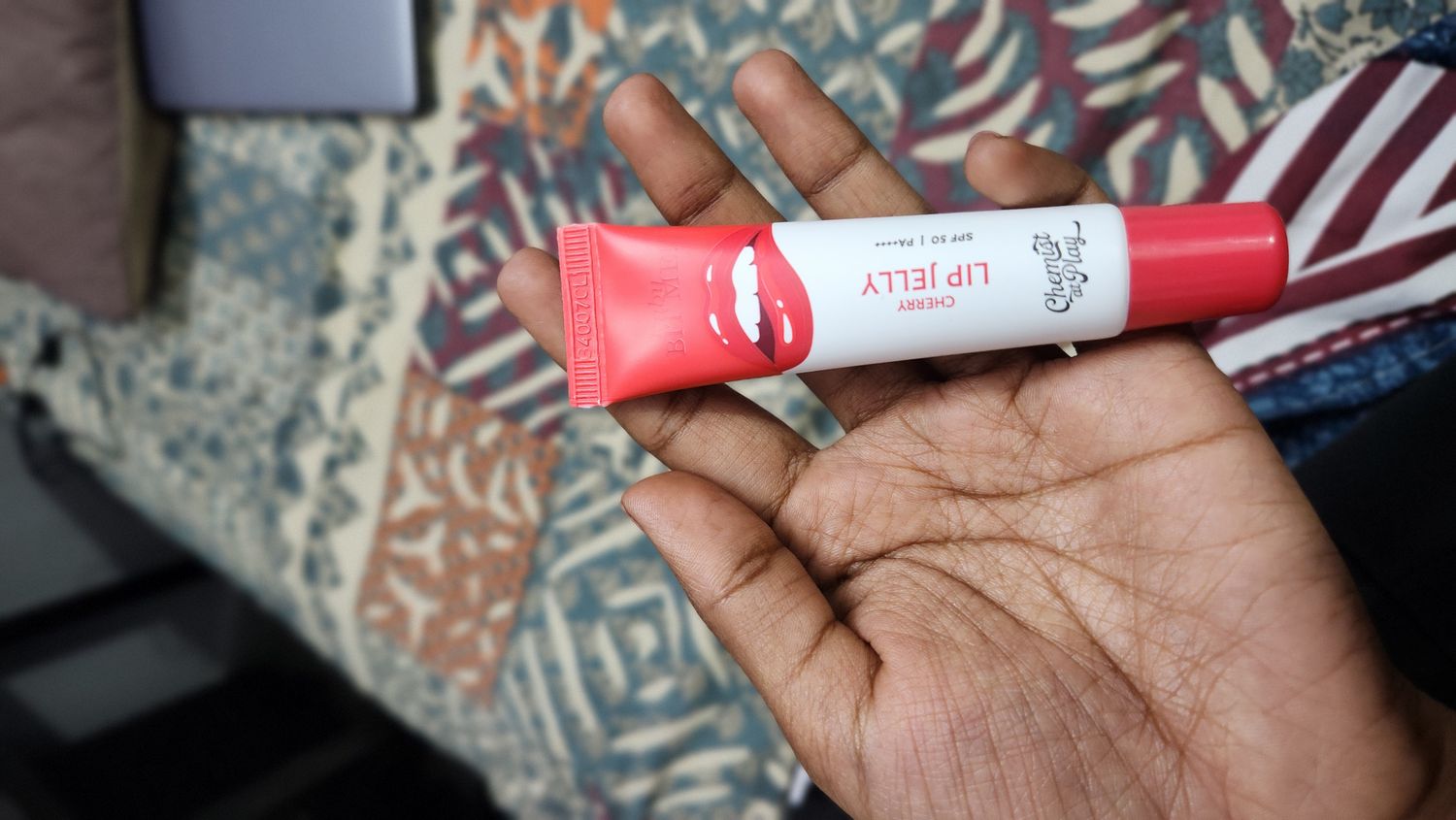 This lip jelly is super hydrating and gives a nice glossy finish. The cherry tint looks natural and enhances the lips without being too bold. The SPF 50 is a big plus, especially for daily use in the sun. It feels lightweight and not sticky.