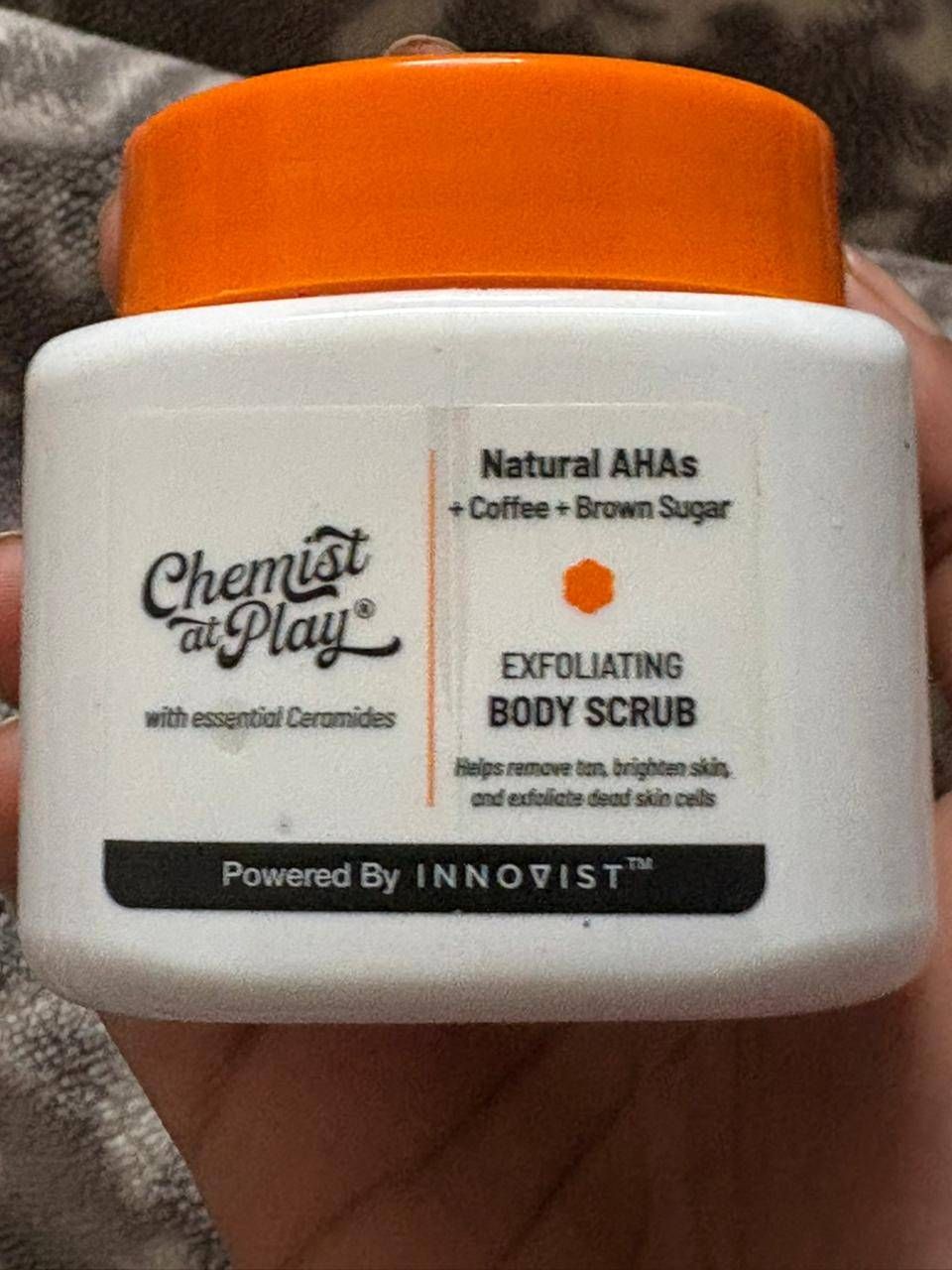 I absolutely love the Chemist at Play Exfoliating Body Scrub! The blend of coffee and brown sugar gently removes dead skin without being harsh. My skin feels incredibly soft, smooth, and refreshed after every use. It also gives a natural glow and smells amazing. With ceramides, it keeps my skin nourished. Perfect for a simple yet effective body care routine