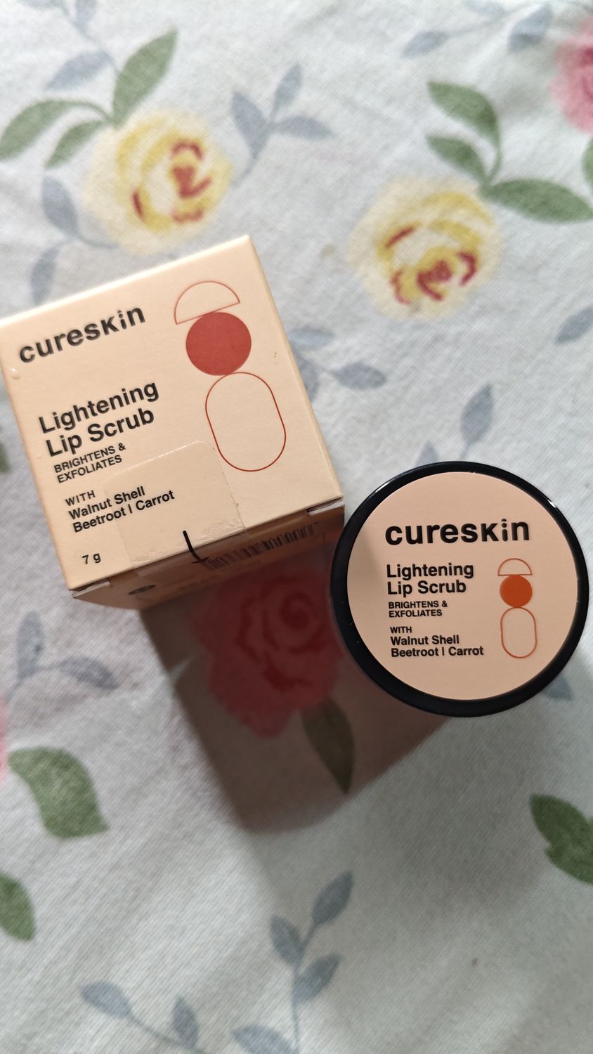 CureskinLightening Lip Scrub for Men and Women | Exfoliate & Brighten with Walnut Shell Powder, Beetroot & Squalane | Lip Scrub for Dark Lips to Lighten Pink (7 gm)