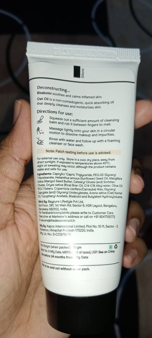 DeconstructSoothing cleansing balm - 0.1% bisabolol and 1% Oats Oil (50 gm)