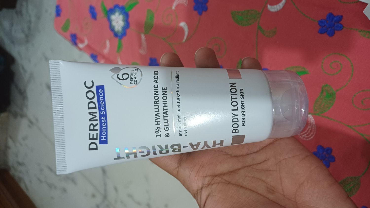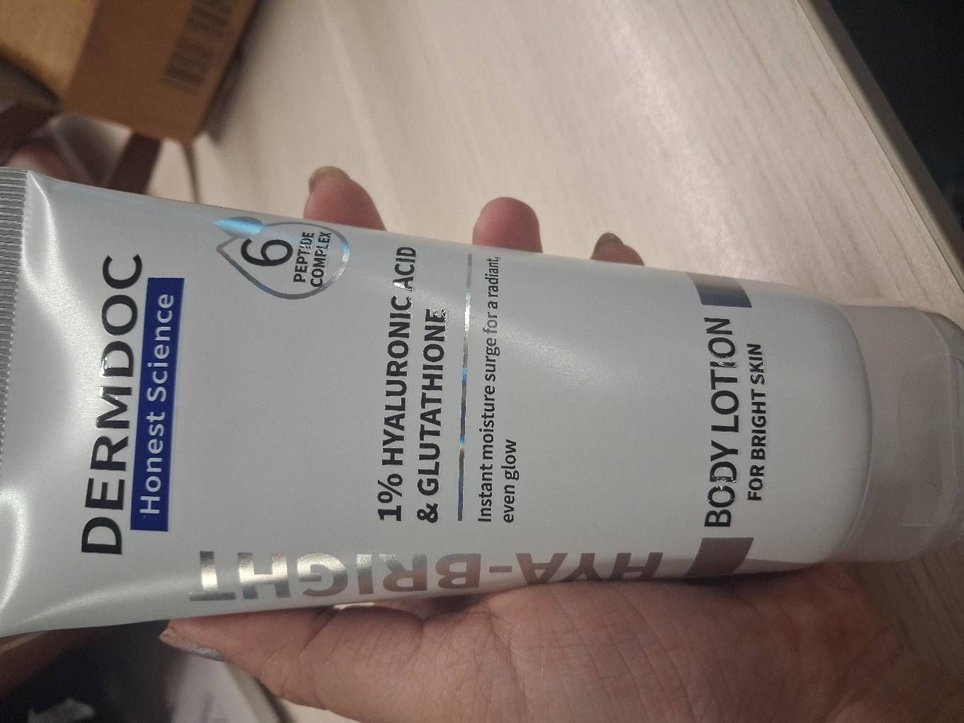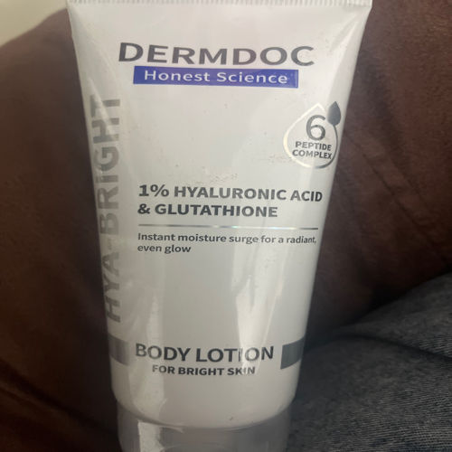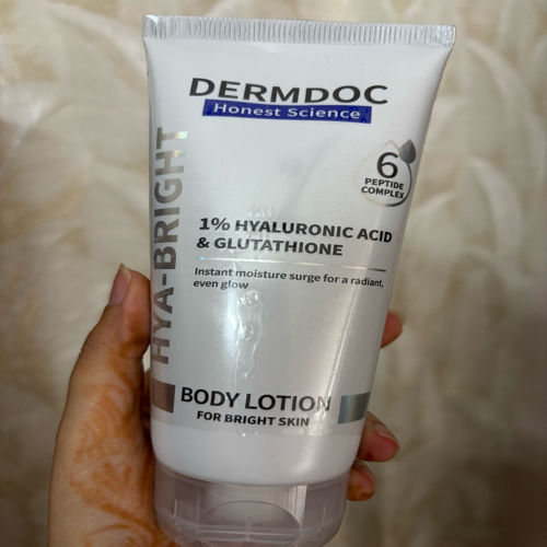 DERMDOC Hya-Bright Body Lotion (180 ml) | With Glutathione, Hyaluronic Acid, Peptides & Niacinamide | Deep Moisturization | Evens Skin Tone | Non-Greasy | For Normal, Dry & Combination Skin