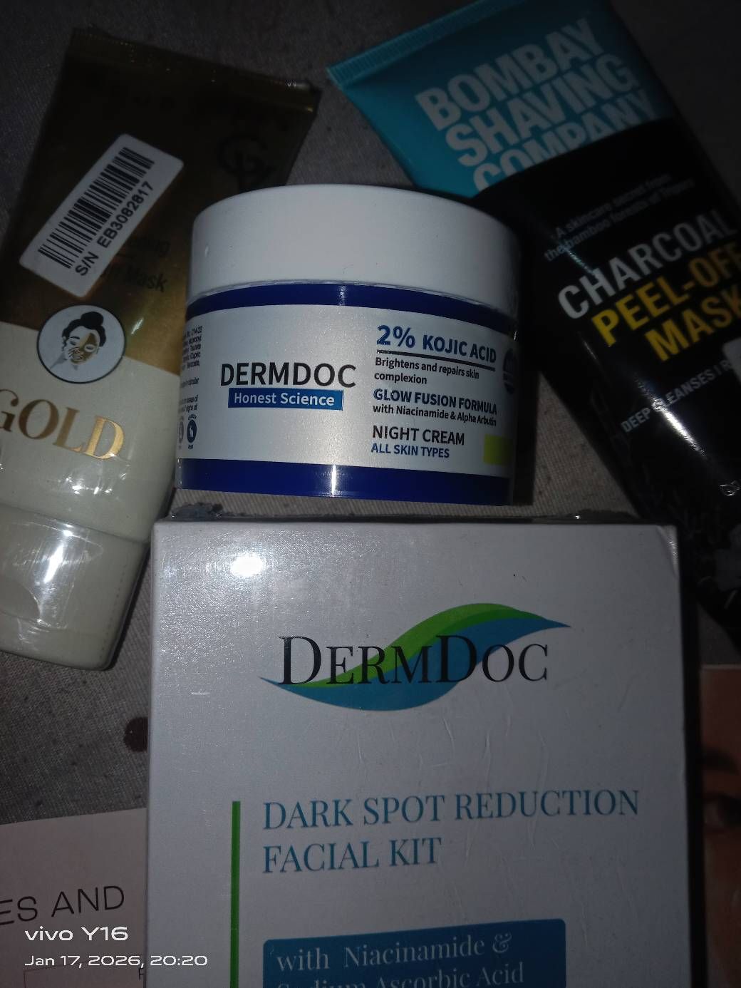 All the products which i receive was just amazing if you have acne prone skin must have dermdoc skin care kit in your daily routine it's non sticky non greasy absorb in skin like water feel nothing heavy even after 5 to 6 lyrics of skin care it's feel really light abd gives you glow also reduced acne scars open opers as well. Must have products 💜 but the only thing where i dissapointed ,i received this parcels very late. I recommend cod.