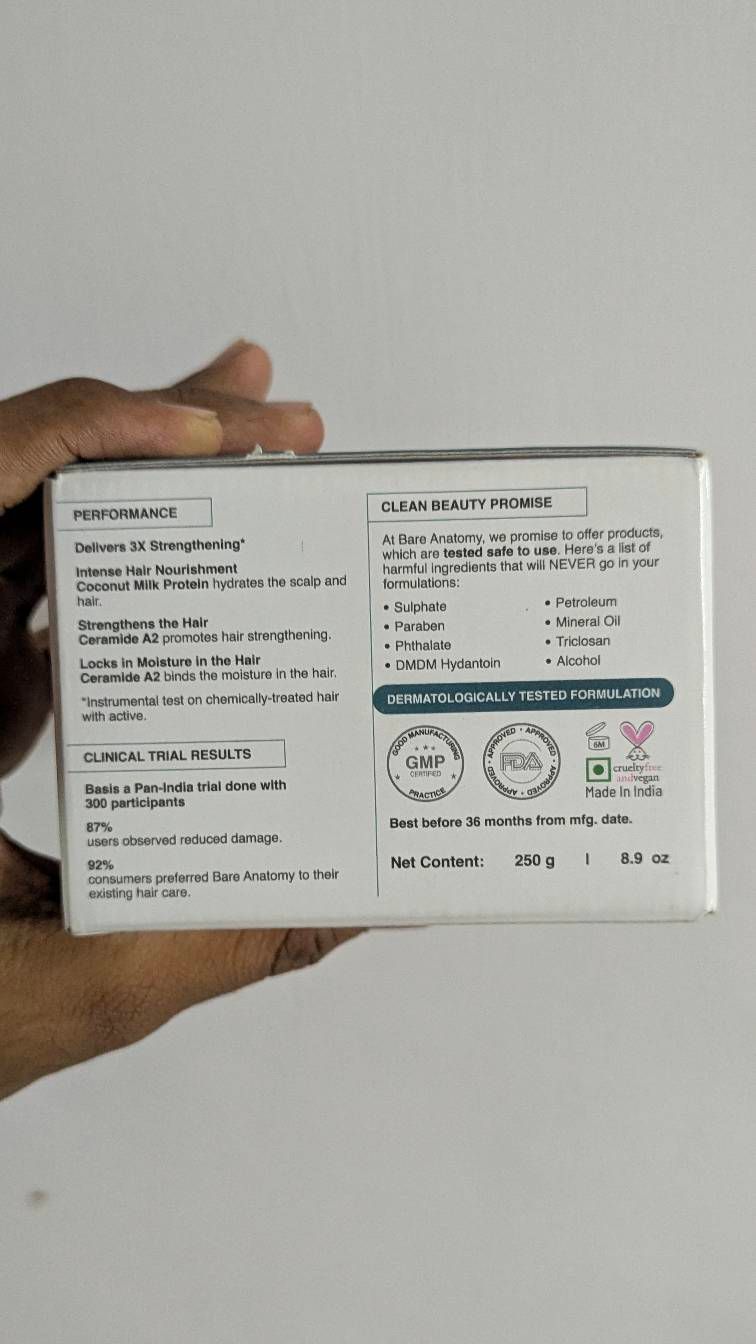 "I used Bare Anatomy Hair Mask and loved it! It has natural ingredients that make my hair soft and shiny. The fragrance is nice, and it's super easy to use. I used it twice a week, and I saw results in no time. Definitely recommend it!" 😊