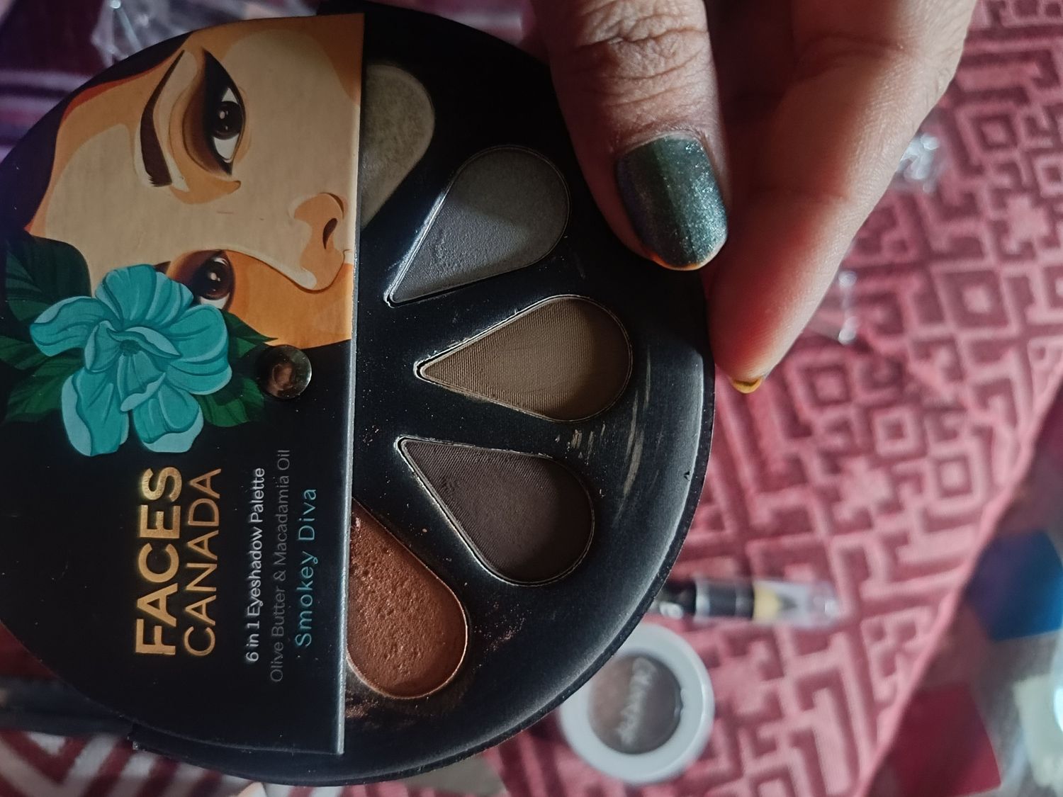 FACES CANADA 6 in 1 Eyeshadow Palette - Smokey Diva 03 6 gm | Olive Butter & Macadamia Oil | Vibrant Colors | Highly Pigmented | Easily Blendable | Silky Satin Texture | No Crease | Cruelty-Free