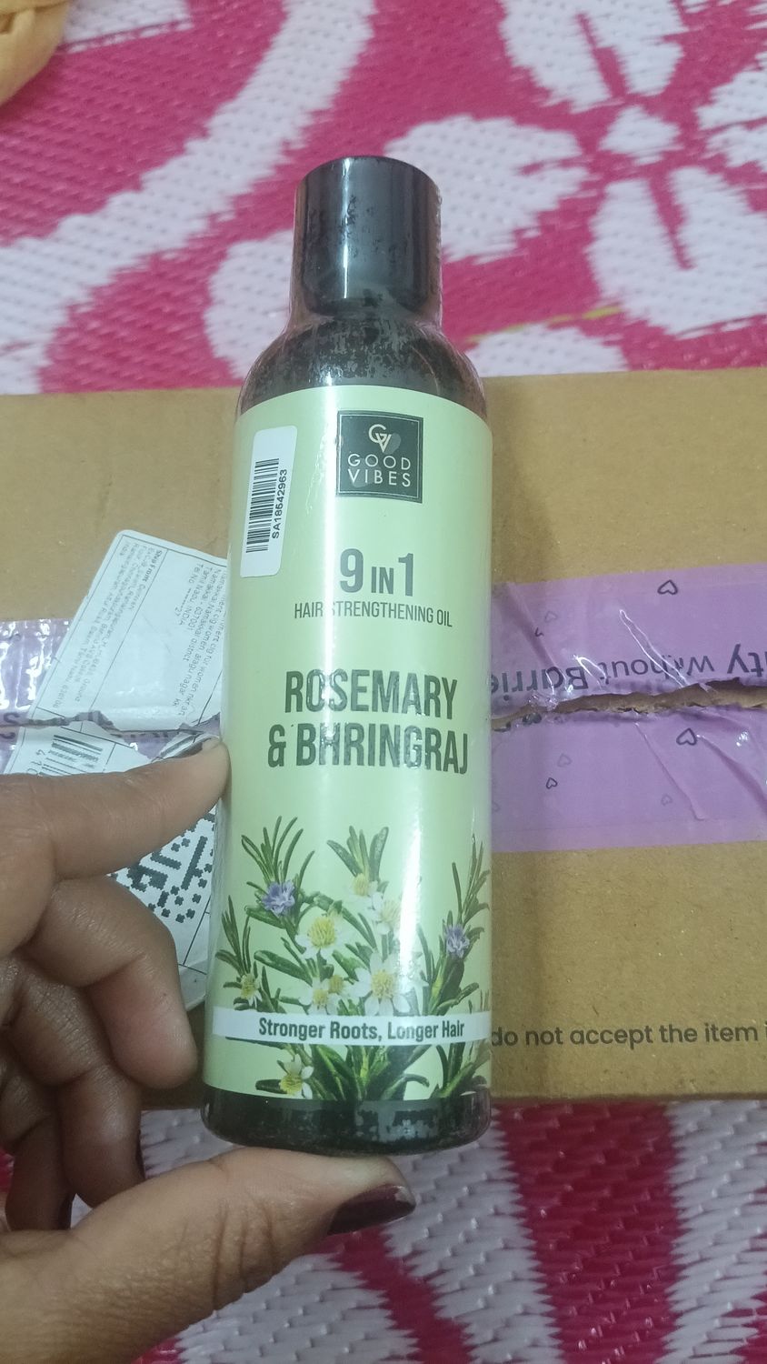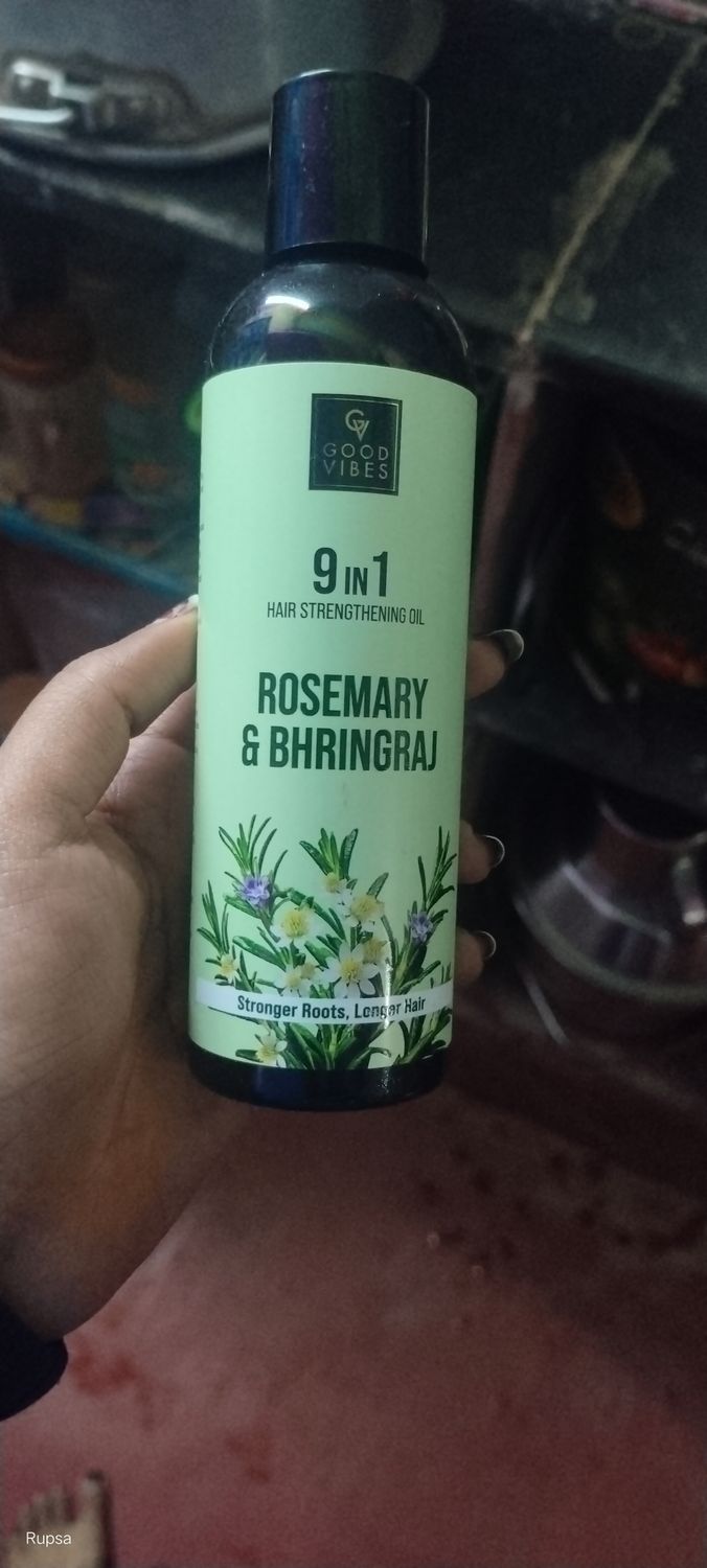 Good VibesRosemary & Bhringraj 9 in 1 Hair Oil | Stronger Roots & Longer Hair | With Rosemary, Bhringraj, Amla, Neem, Curry Leaf, Jojoba, Brahmi, Cedarwood & Sage Oils | Anti Hair Fall Oil | Stimulates Hair Growth 200 ml