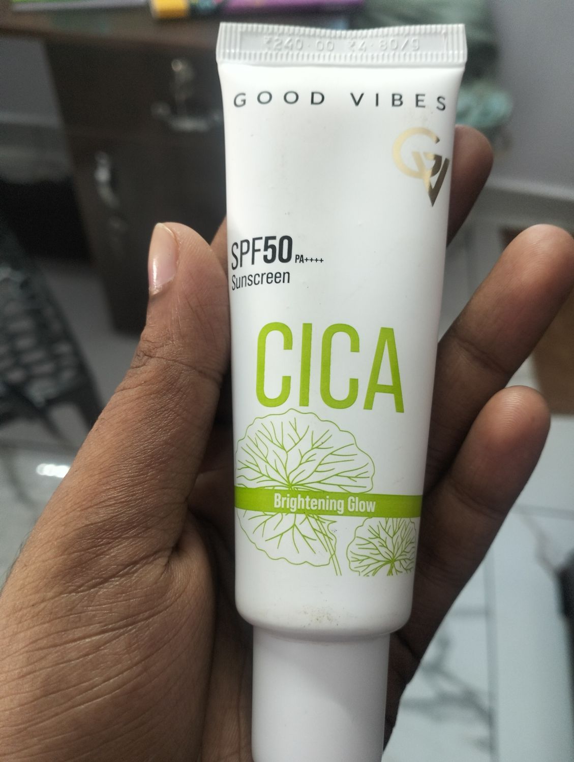 Honest of review👉🏻It is easy to carry and use, Consistency like milk smooth, easily absorbed,no white cast,no irritating fragrance, calming and smooth finish,gives glow look,gives sun protection for 3 hour and need to re-apply every 3 hour(just like need cuddles by partner),And a secret too🗣️ it gives glass skin glow. that's why am love with Good vibes cica sunscreen 😫💗🤌🏻