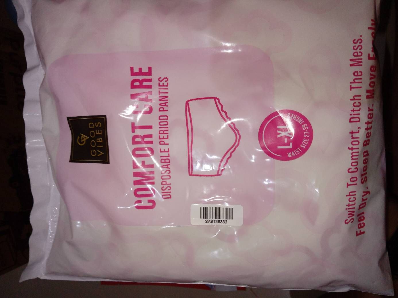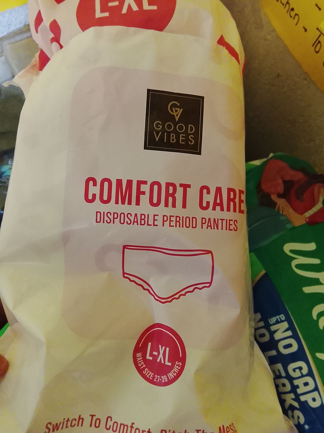 Good VibesComfort Care Disposable Period Panty Pack of 1 Travel & Trial Pack (L - XL) Leak-Proof, Rash-Free & Super Absorbent | 360A° Coverage | Overnight Protection for Heavy Flow | Sanitary Underwear 1 pc