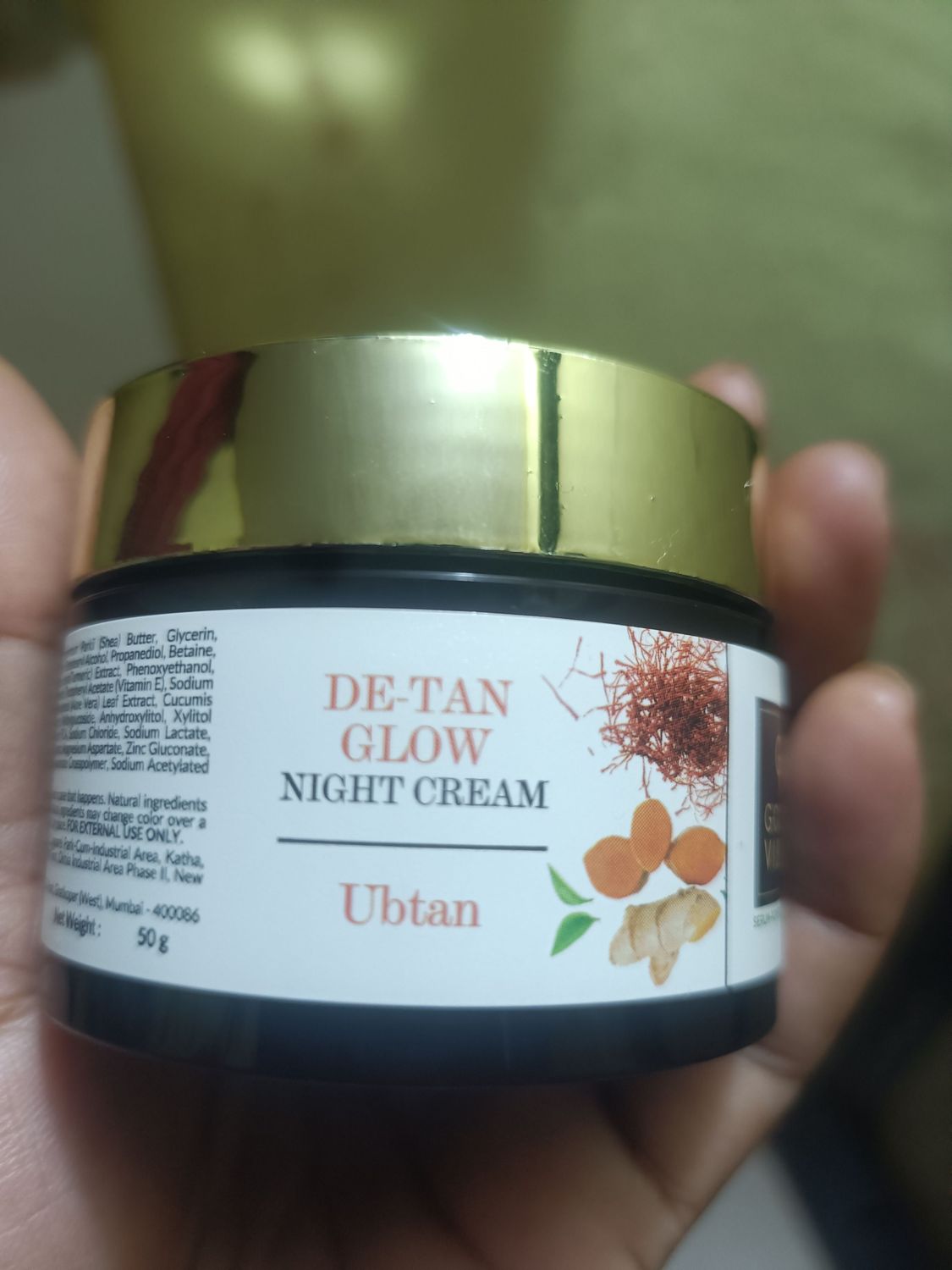 Good Vibes De-Tan Glow Night Cream Ubtan with Power of Serum | Tan free, Brightening, Pigmentation, Skin renewing, Sleep treatment (50 gm )