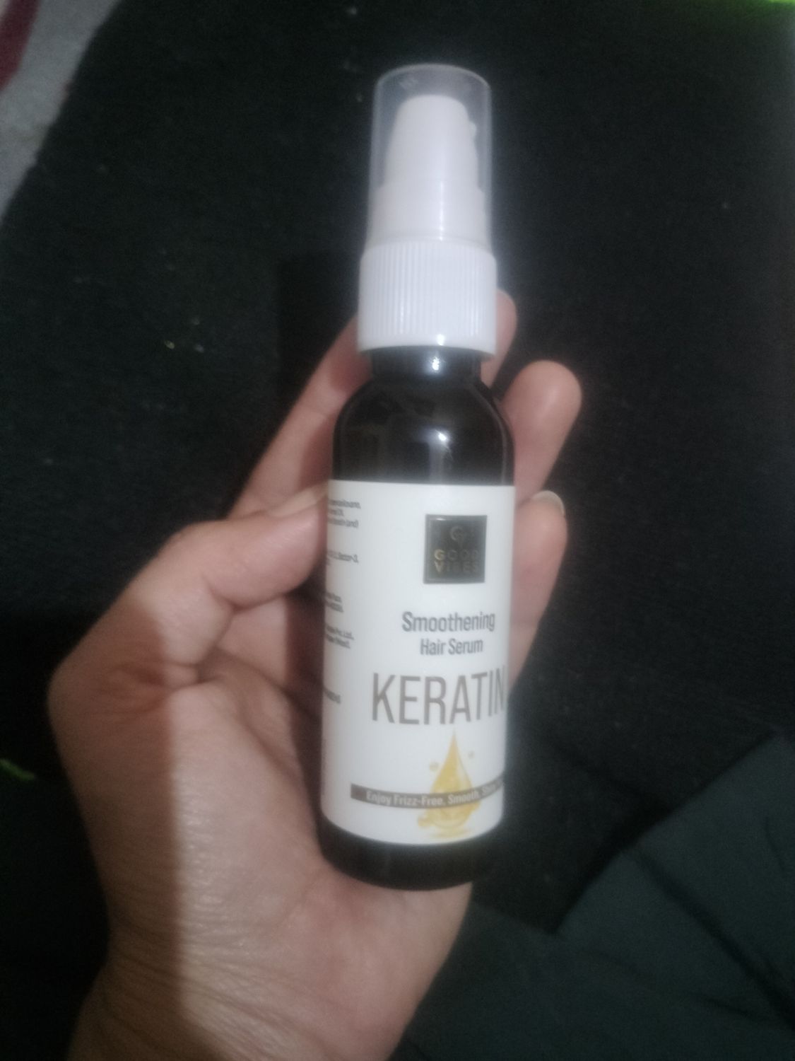 Good VibesKeratin Smoothening Hair Serum with Keratin & Almond Oil | Reduces Frizz & Smoothens Hair | Adds Shine & Softness | Nourishing & Lightweight Formula | For Frizz-Free, Silky Hair – 50 ml