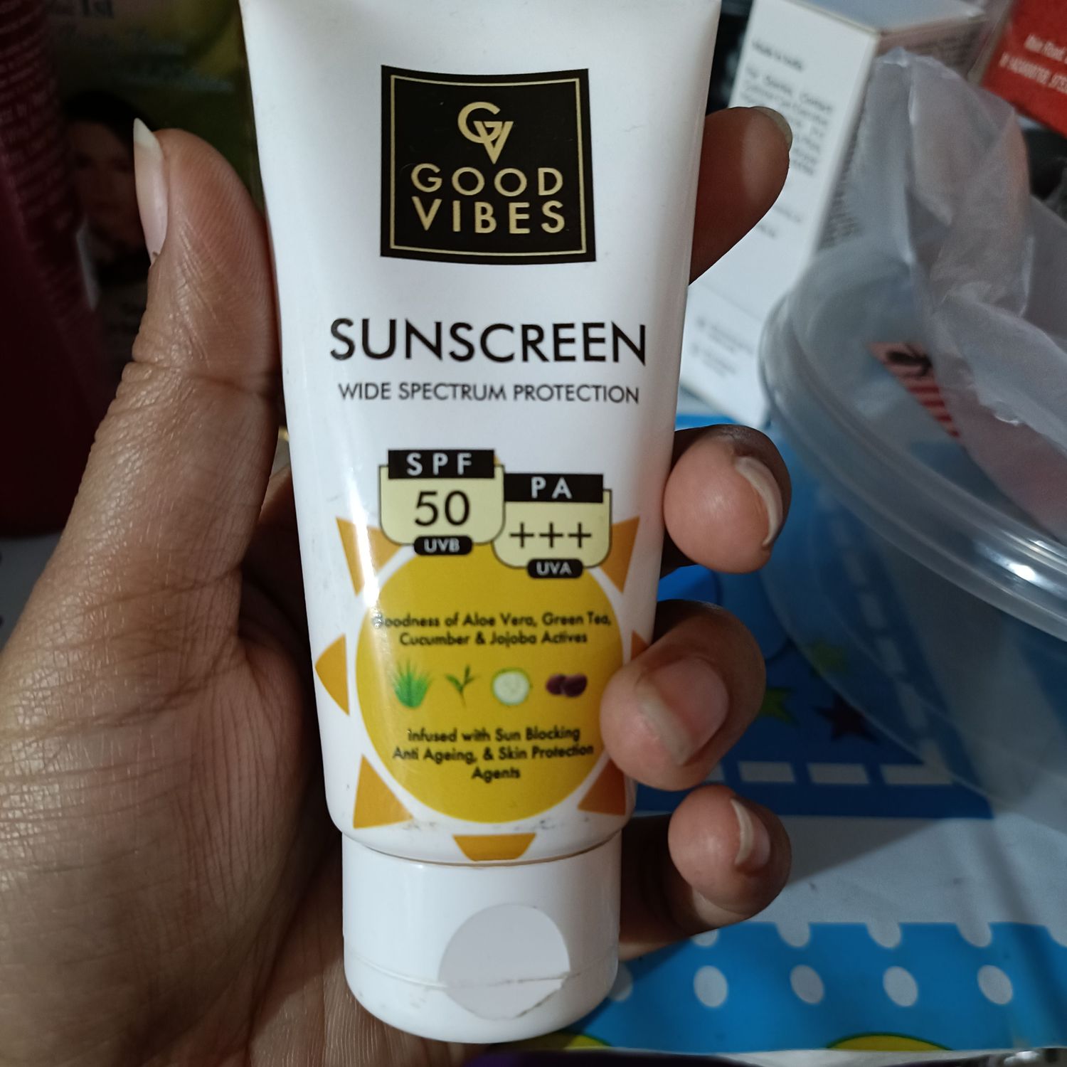 Good VibesWide Spectrum Protection Sunscreen with SPF 50 | With Aloe Vera | New & Improved | 50 gm
