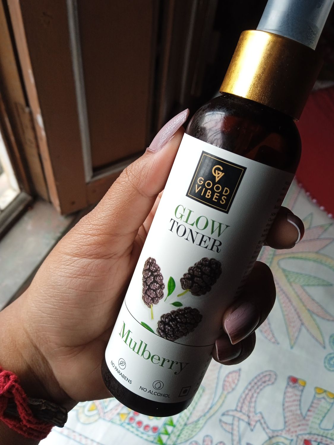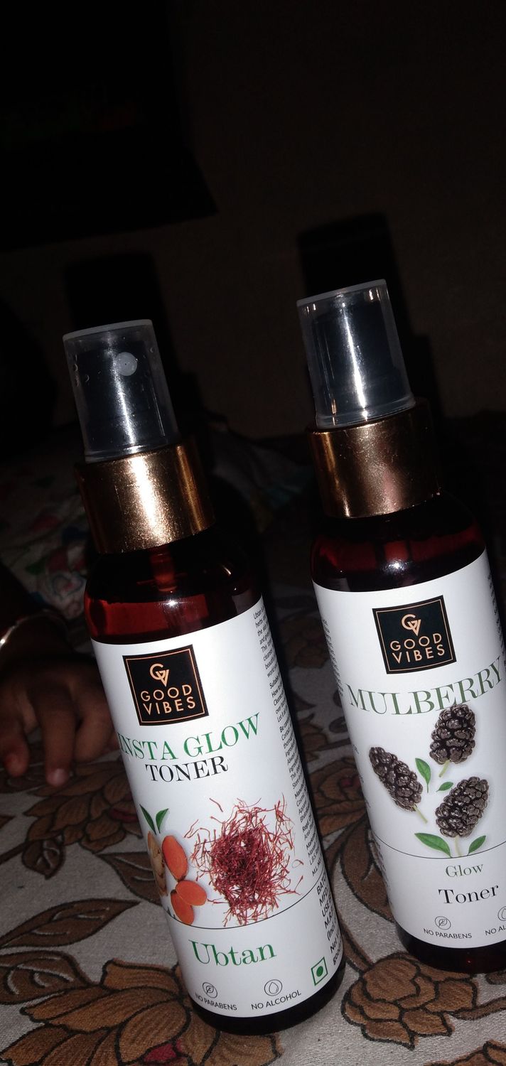 very nice toner soothing effect gives a glow after using it. done what they claims. helps to tighten skin slowly but helps to reduce wrinkles. nice fragrance no alcahol. first i used biotique cucumber toner i just hated it because of its string smell. everyone should try goodvibes toner highly recommended. i am going to purchase again.
