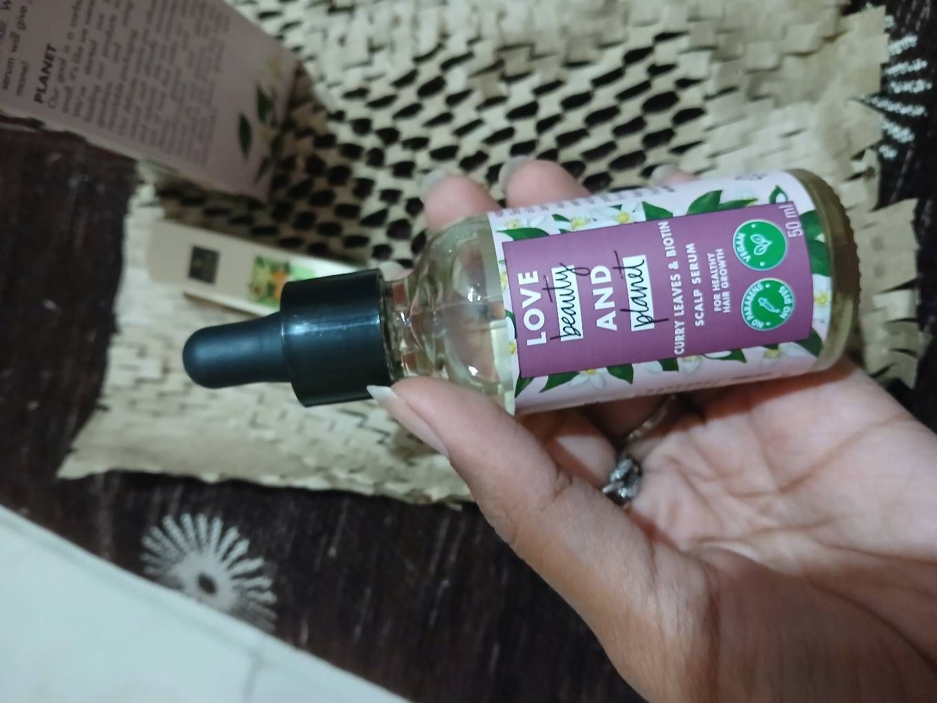 I recently purchased this love beauty and planet curry leaves and vegan Biotin hair growth scalp serum and I am extremely happy . I am using it past few days and changes are clearly visible. I have noticed a considerable reduction in hair loss after using this serum. This serum is light weight and non greasy. Fragrance is also good. Curry leaves and Biotin combo is just wow. It's also improved texture of my hairs. Must say it is a masterpiece. I am absolutely in love with this serum.