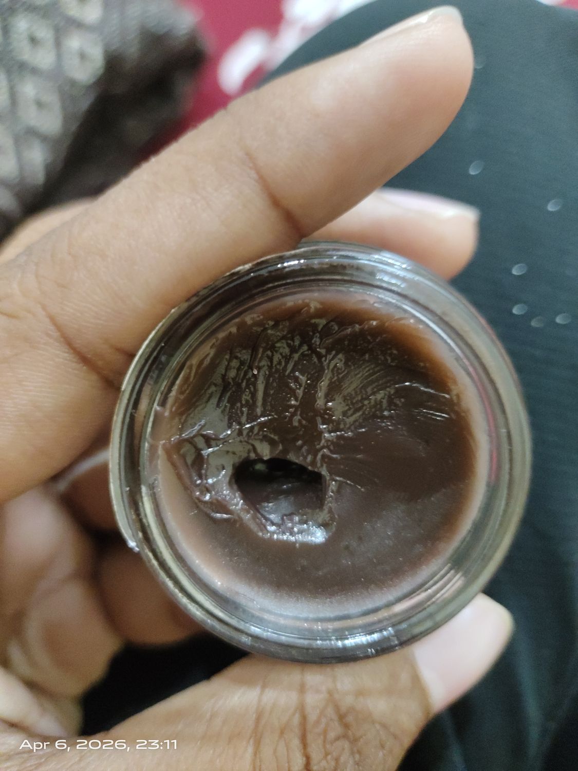 It comes in beautiful glass container. Smells like coffee bite candy Feel so light on lips , good stay, not sticky like others. Oil based texure with almost transparent brown tint. Nice product ,,👍🏻
