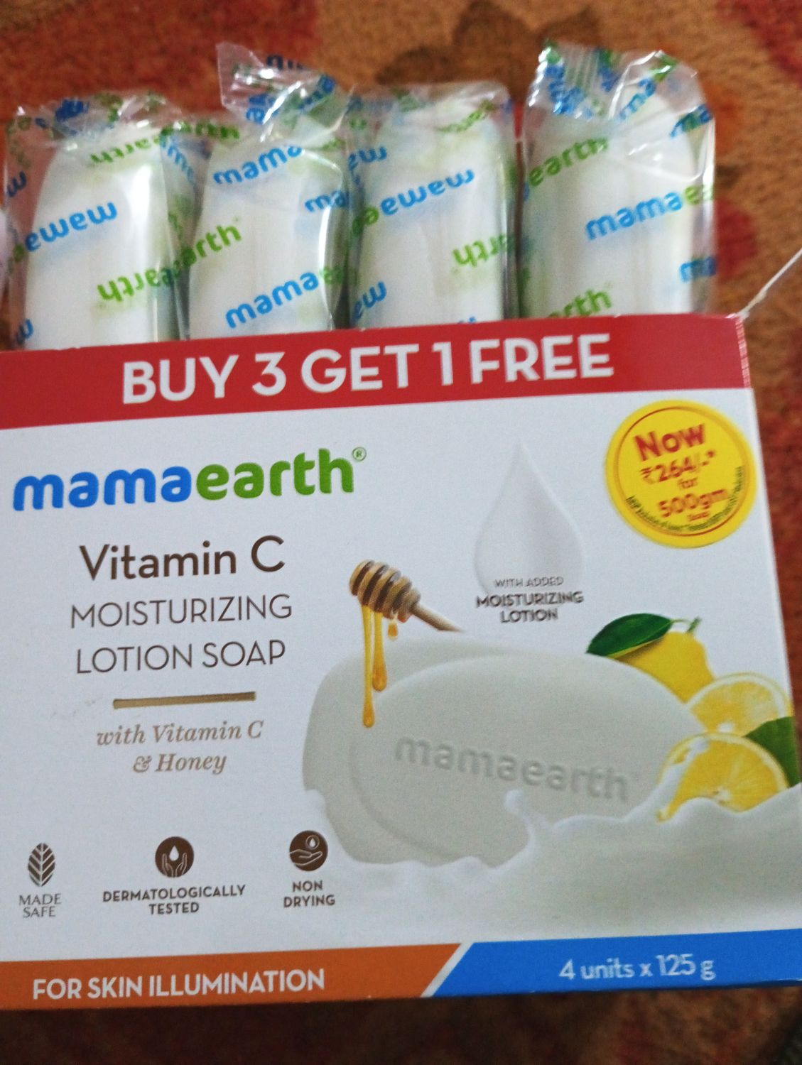MamaearthVitamin C Moisturizing Lotion Soap (3 + 1 Free) (125 gm x 4)