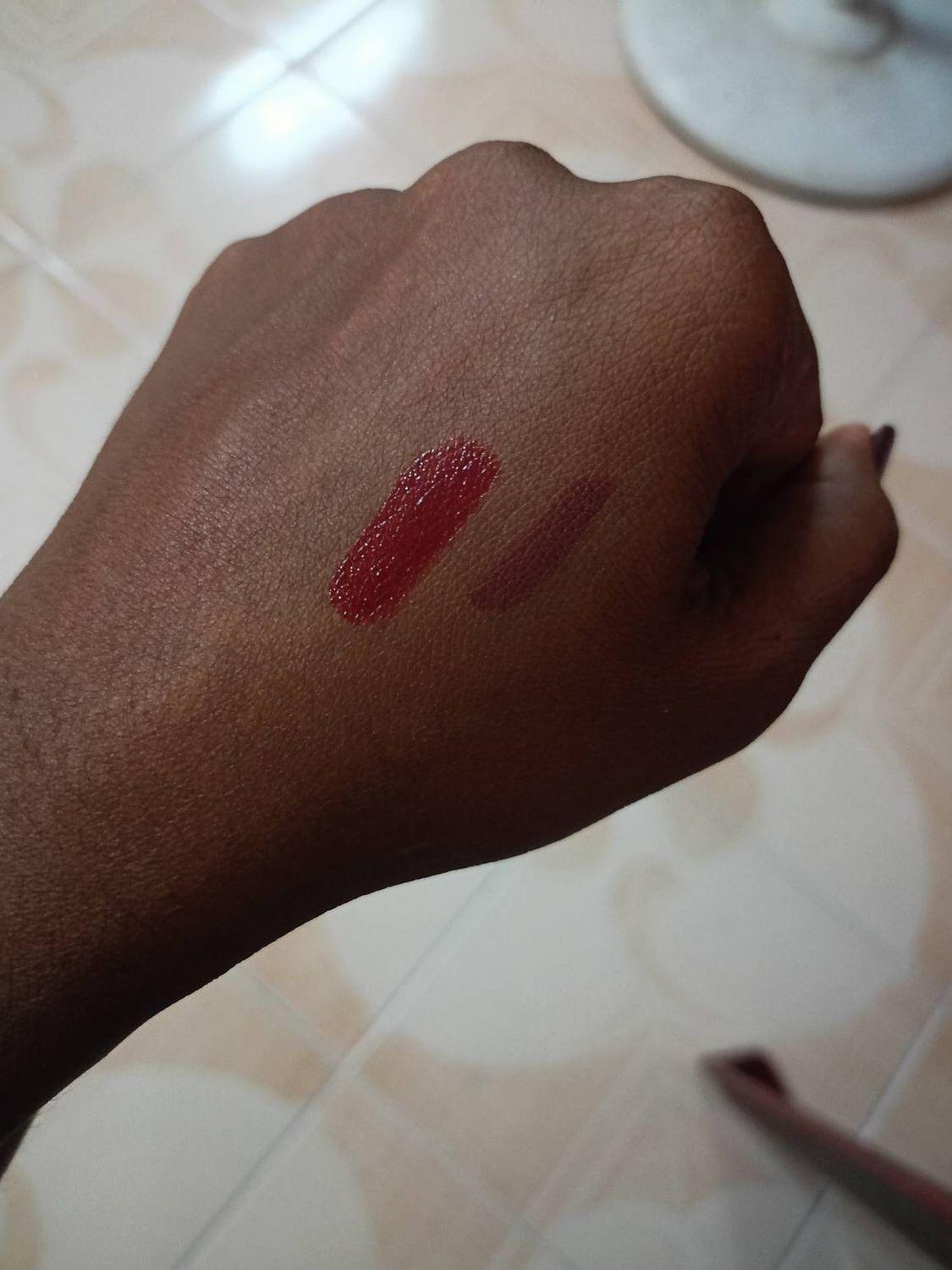 Real glossy finish and leaves a good think on your lips. it's pretty long lasting.