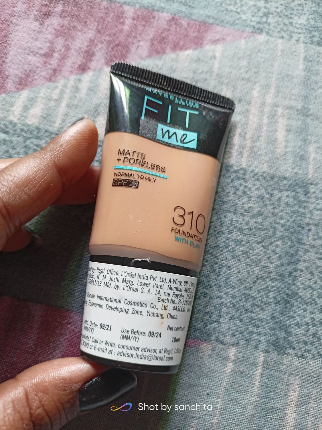 Maybelline New York Fit Me Matte + Poreless 16HR Oil Control Foundation Tube - 310 Sun Beige, 18 ml