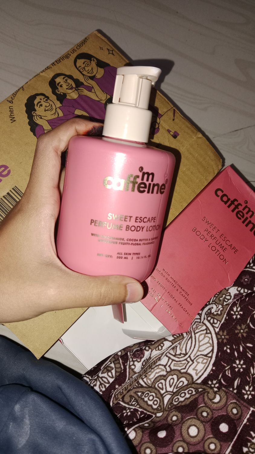 mCaffeineSweet Escape Perfume Body Lotion with Niacinamide, Cocoa & Shea Butter | Deeply Moisturizes | Luxury Fruity-Floral Scented Lotion - 300 ml