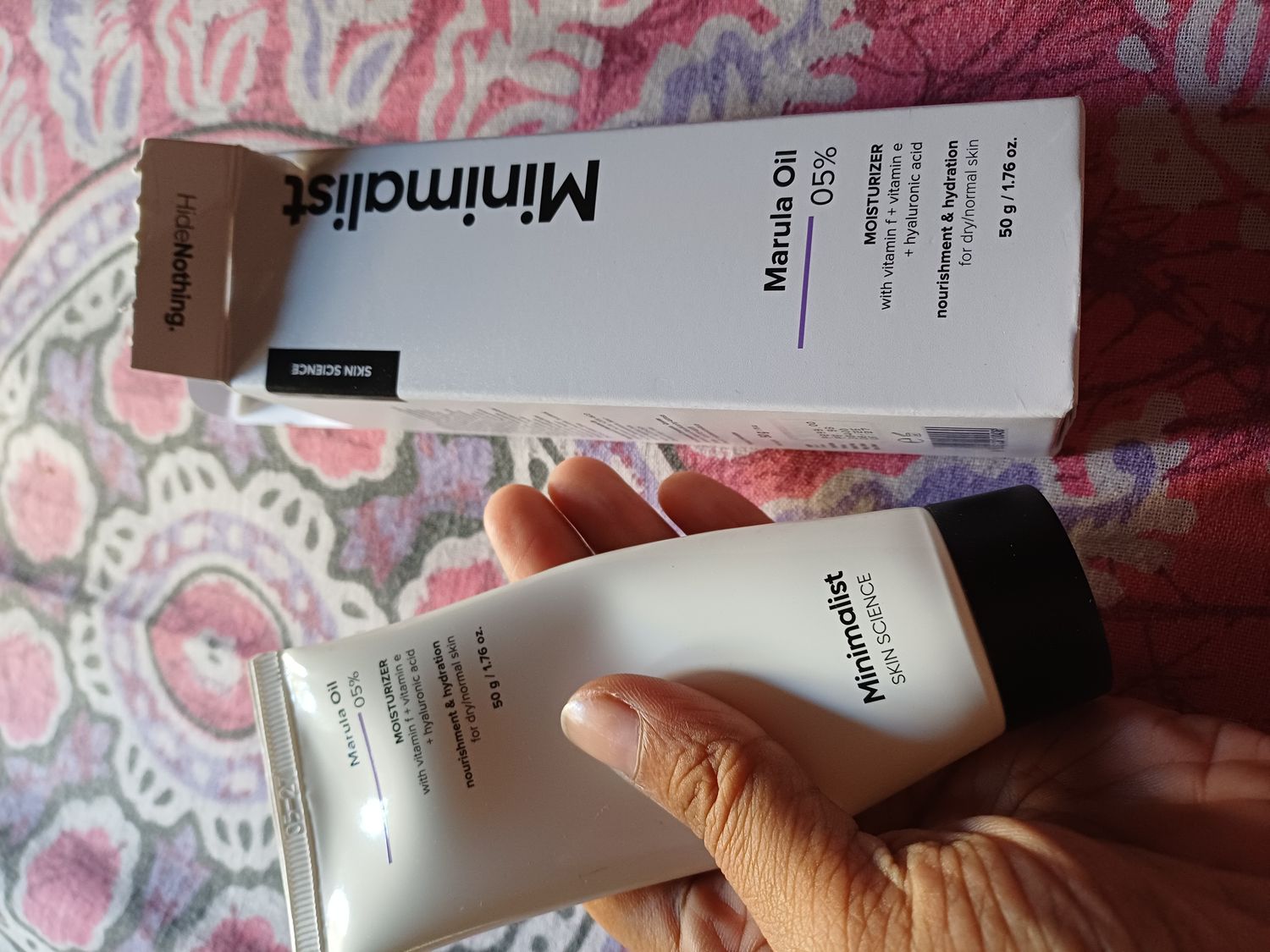 One of the best moisturizers I have used till now. I'm writing this review after using for one month. For my dry skin it works like wonder. Stays on my skin upto almost 20 hrs. Clear difference on fingers and face skin after applying this as shownin the picture. No need to re apply unless you wash it off. Fell in love with minimalist ❤️ I'd love if minimalist launches bigger quantity of their products.