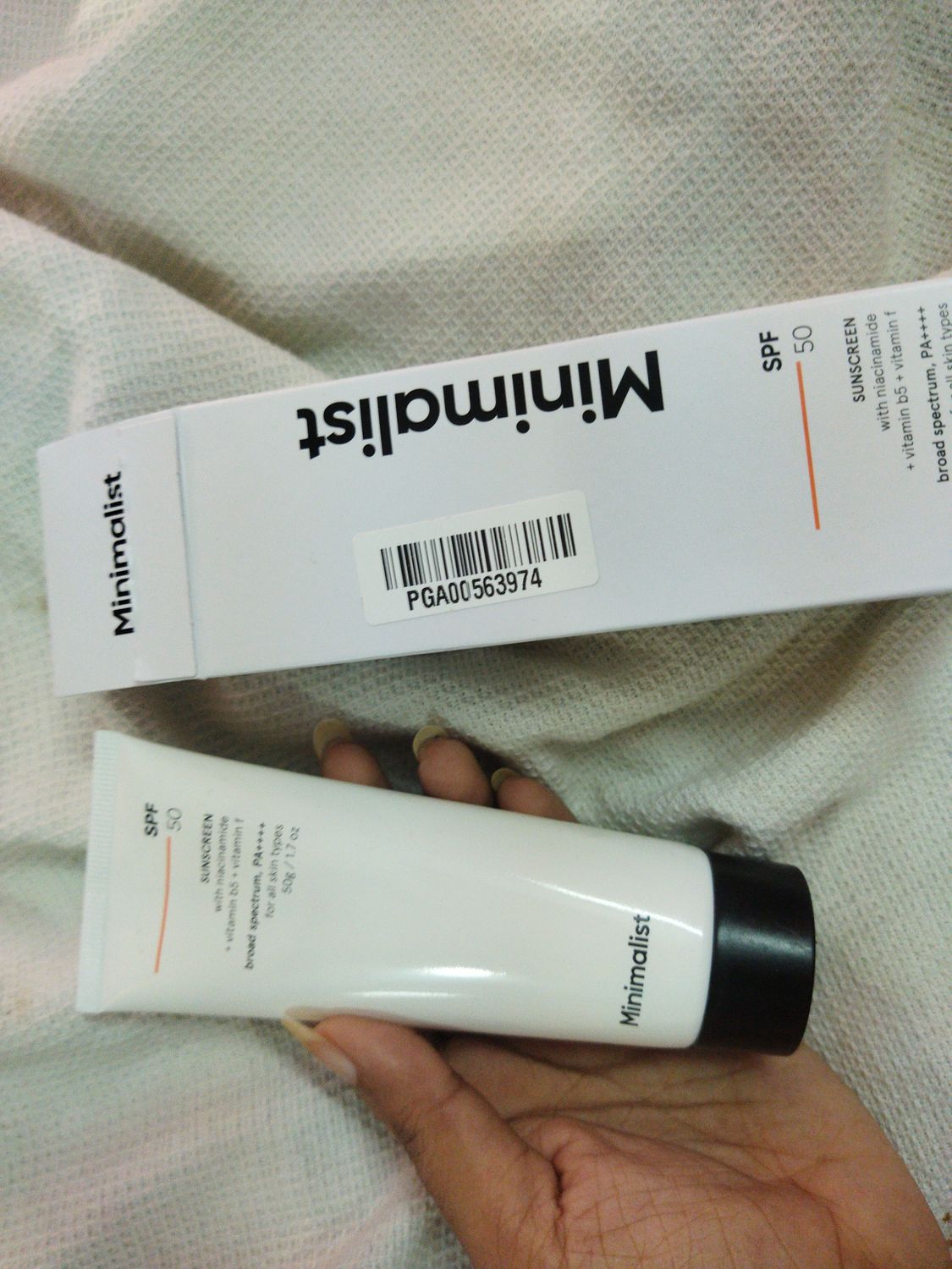 MinimalistSPF 50 Sunscreen with niacinamide + vitamin b5 + vitamin f, broad spectrum, PA++++ for all skin types, 50 gm
