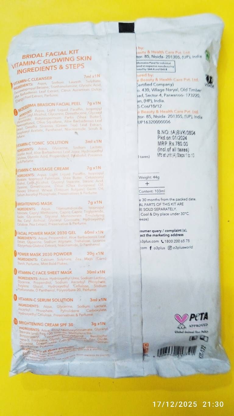 O3+ Bridal Facial Kit Vitamin C Glowing Skin(44 gm+103 gm)