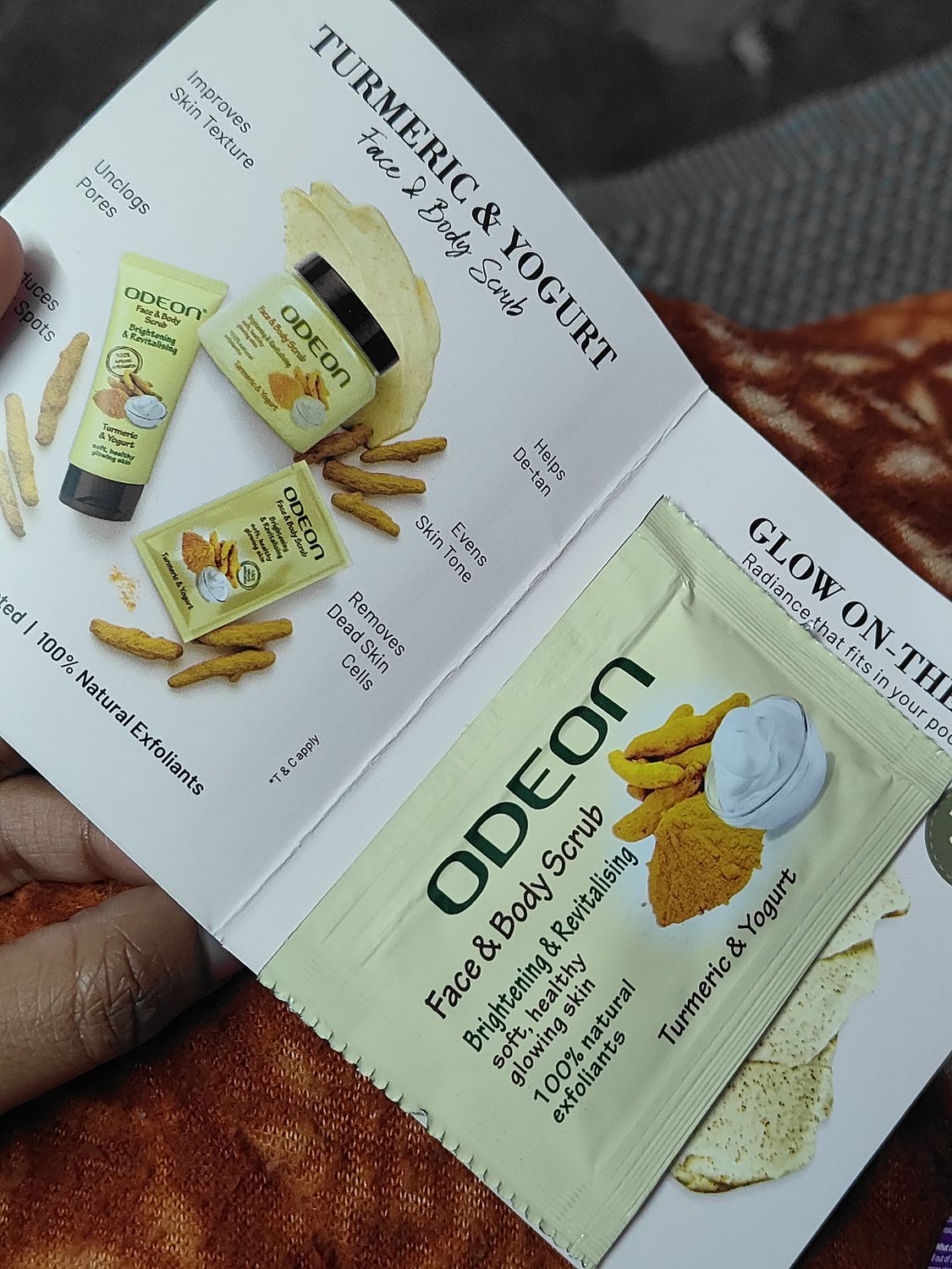OdeonBrightening Turmeric & Yogurt Face and Body Scrub I Gentle Exfoliating Scrub for Glowing Skin I Reduces Tan - 6 ml