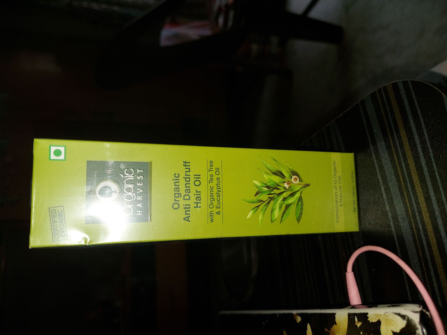 this product is pretty much helpful it reduces stress removes dandruff and lightens head. i highly appreciate organic harvest brand for the product.
