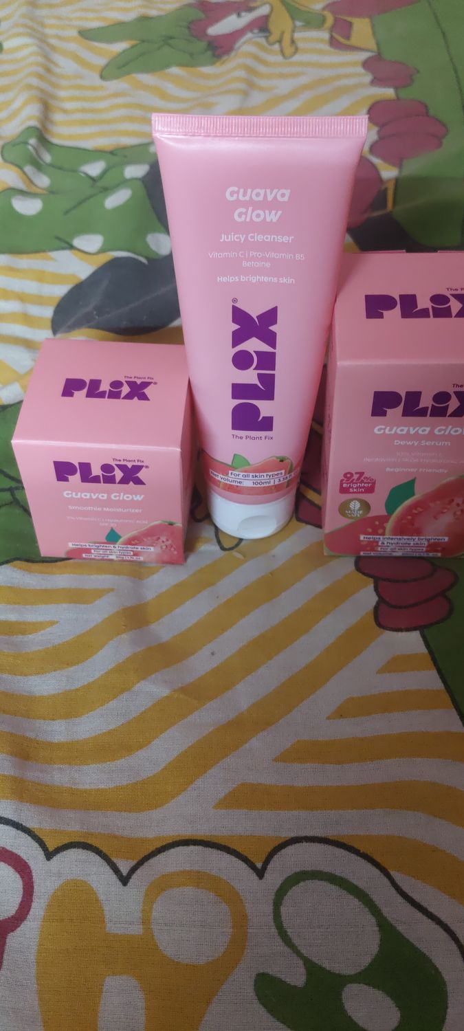 PLIXGuava Glow 3-in-1 Skincare Set: Guava Cleanser (100 ml), 10% Vitamin C Face Serum (30 ml) & Guava Moisturizer (50 gm) Combo of 3