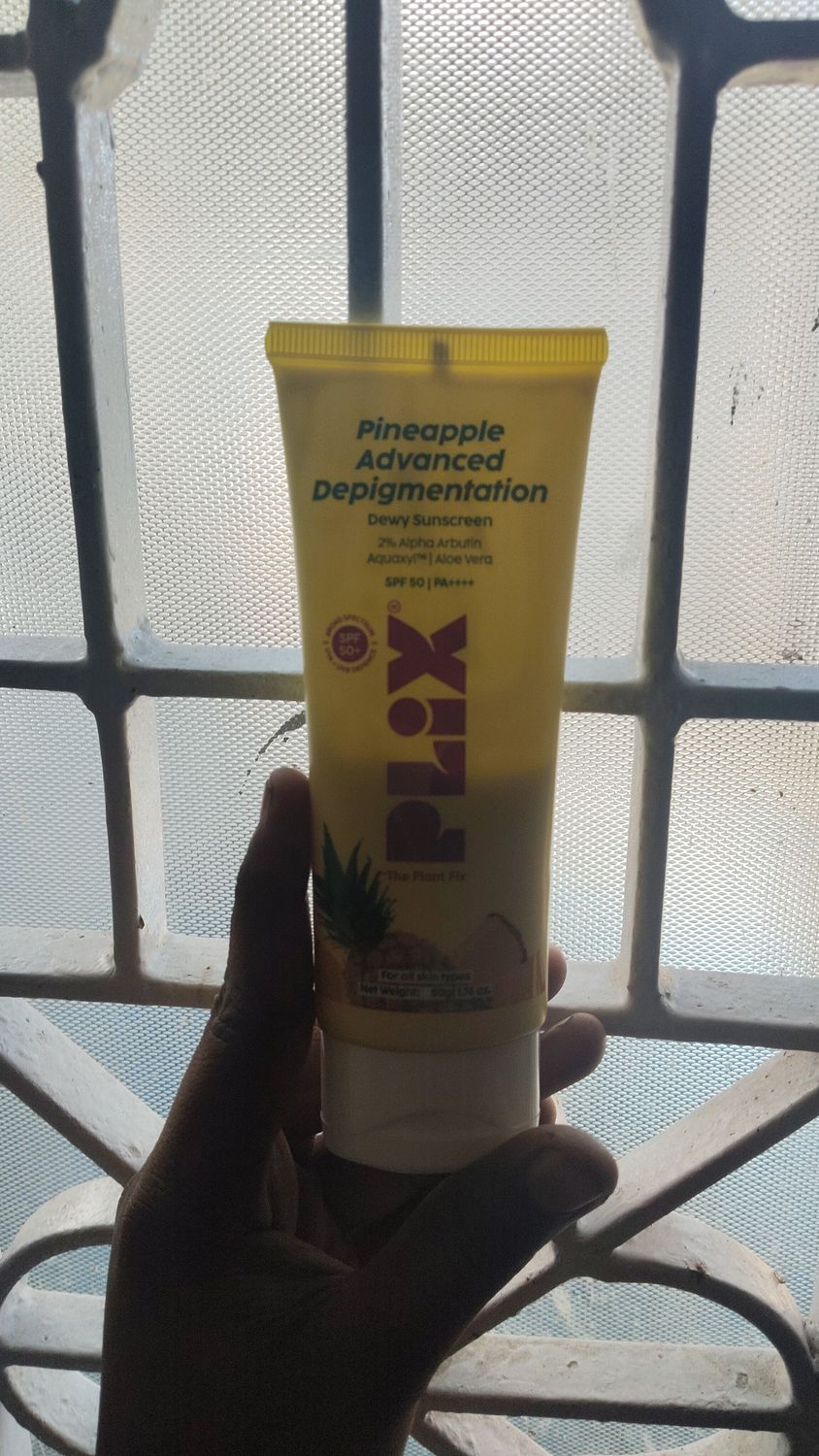 PLIXPineapple Advanced Depigmentation Dewy Sunscreen SPF 50 PA++++ | Alpha Arbutin & Aquaxyl | Reduces Pigmentation, Protects from UV & Blue Light, Hydrates Skin | Vegan & Paraben-Free | 50 gm