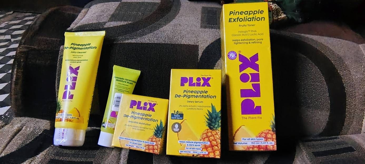 PLIXPineapple De-Pigmentation Regime with Pineapple Exfoliation Fruity Toner 150 ml, Pineapple Juicy Cleanser 100 ml, Pineapple Depigmentation Dewy Face Serum 30 ml, & Smoothie Moisturizer 50 gm, Combo of 4