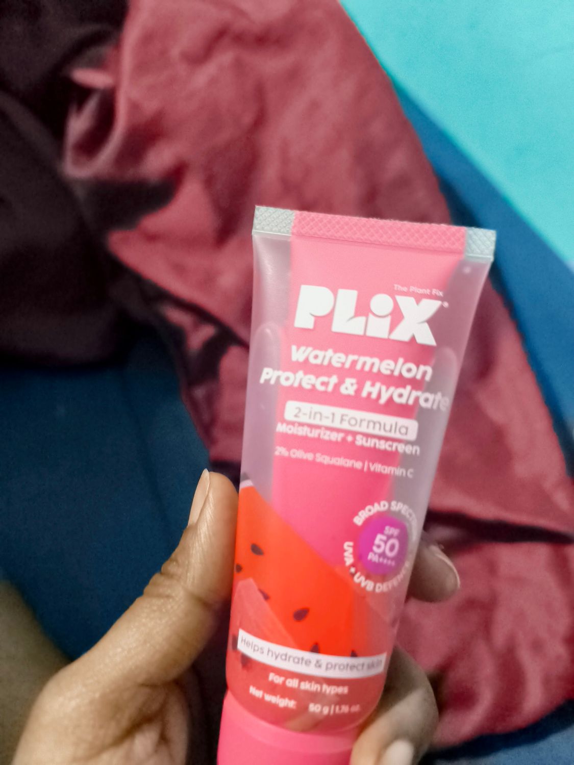 PLIXWatermelon Protect & Hydrate 2 in 1 formula Moisturizer + Sunscreen | Lightweight Hydration | With SPF PA 50 ++++ | UVA & UVB protection | No White Cast | 50 gm