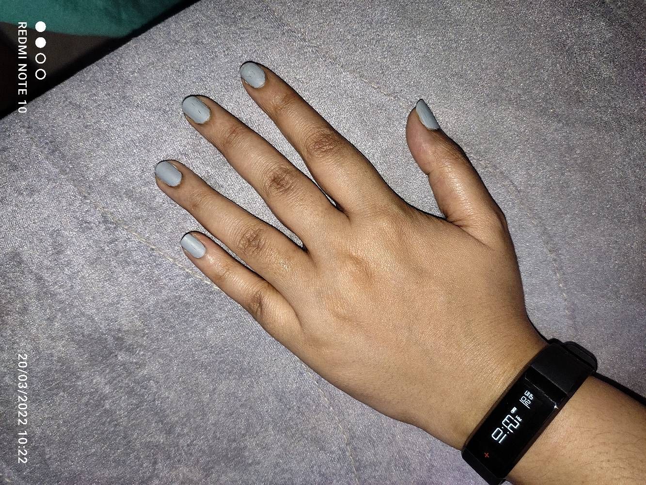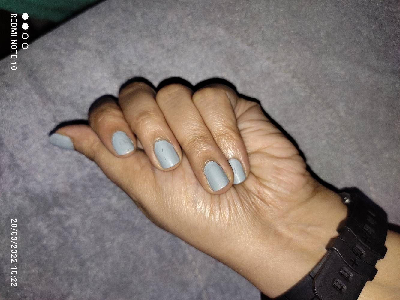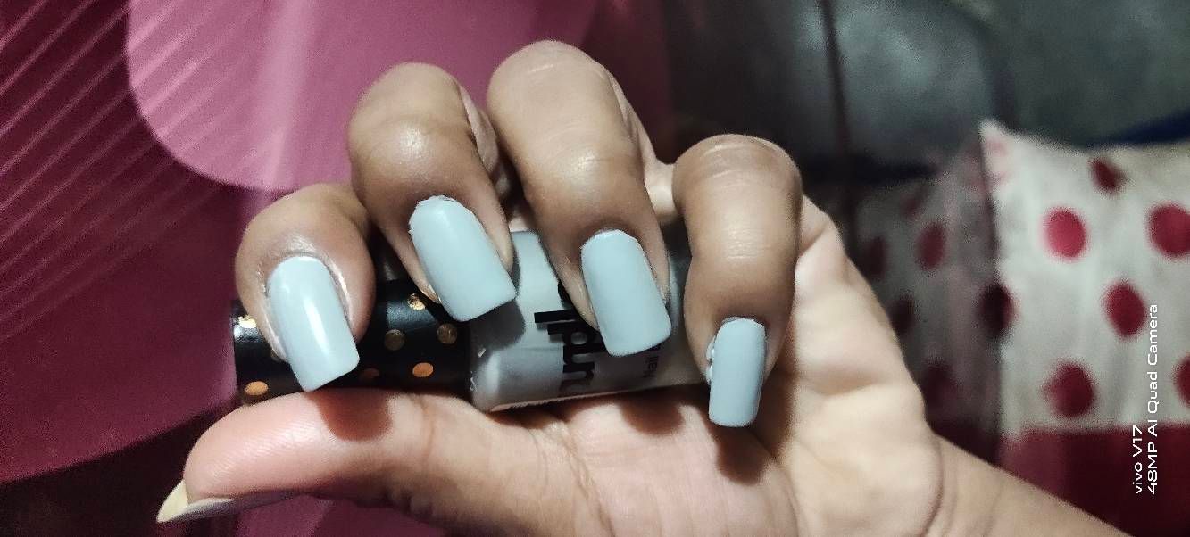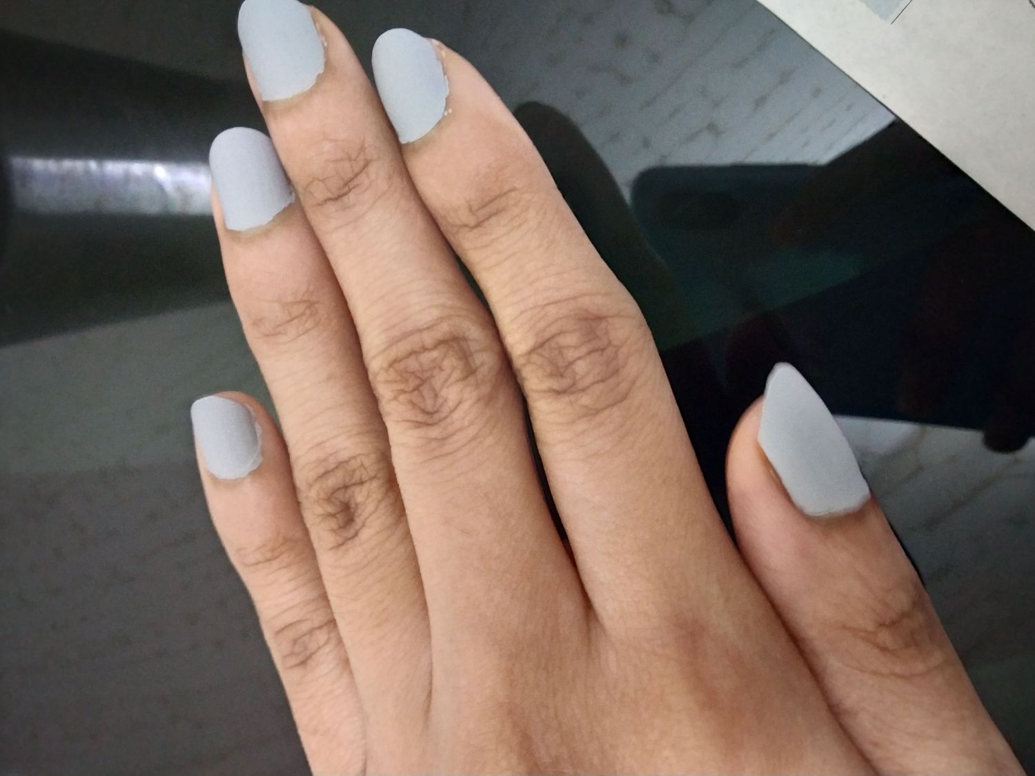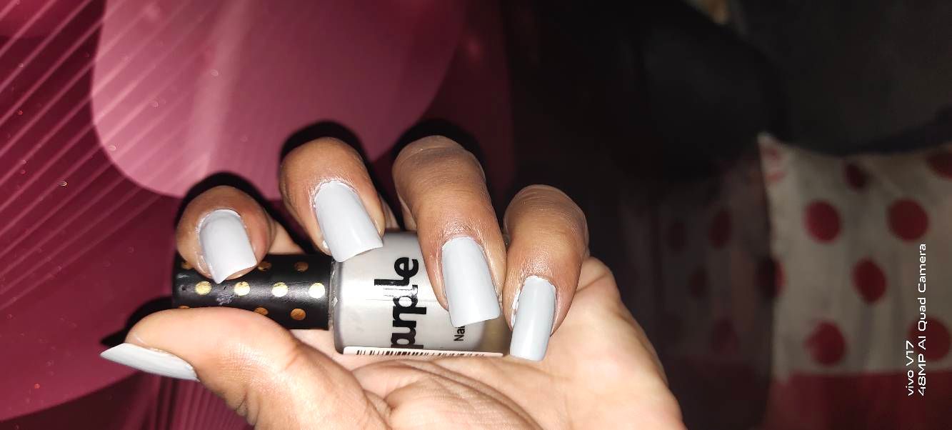So pretty color..bluish grey..very fast drying on nails