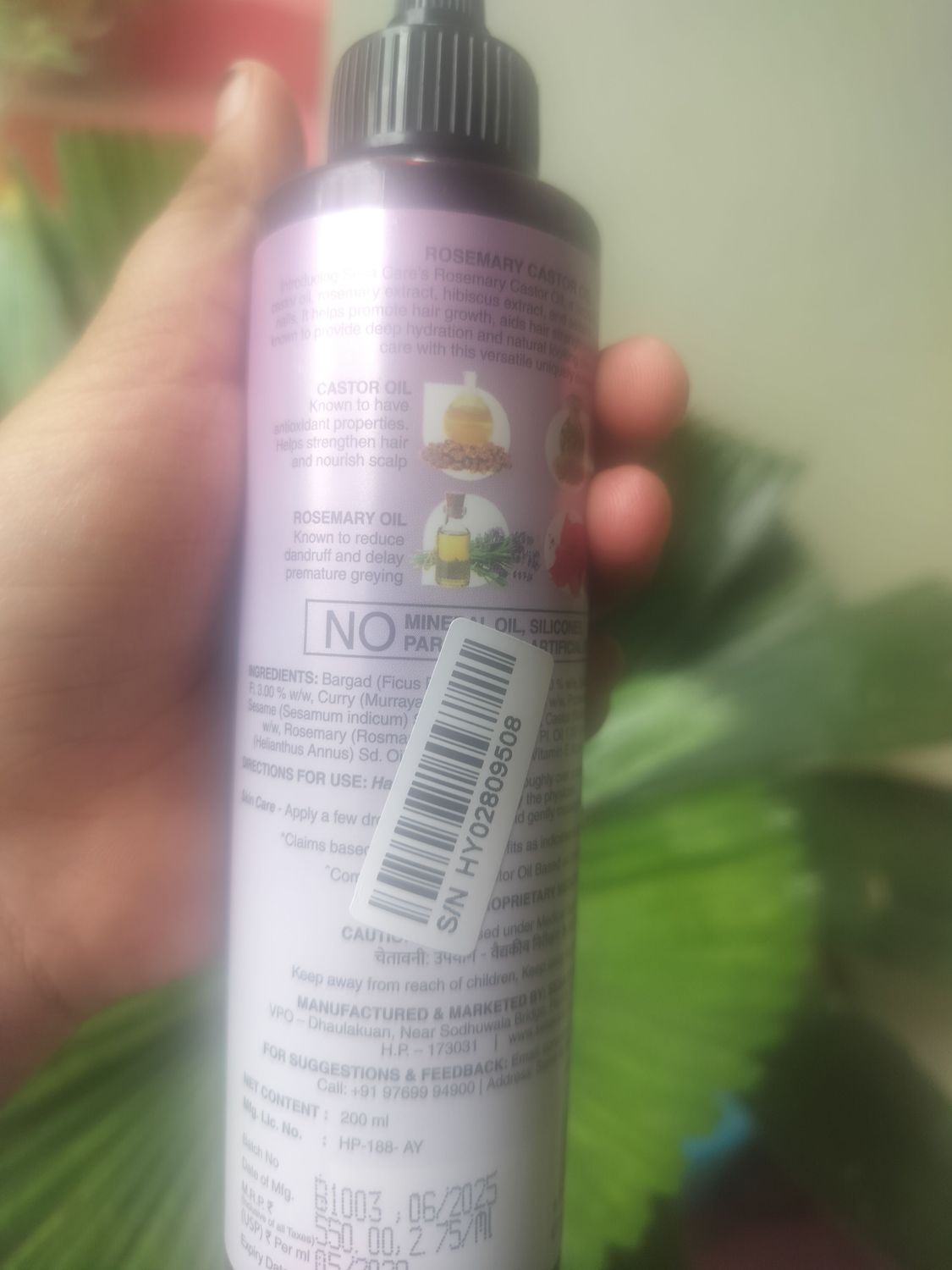 SesaAyurvedic Rosemary Hair Oil with Castor Oil & Sesame, Hibiscus For Hair Growth Strengthens Roots Controls Hair Fall and Moisturising Dry Skin - 200 ml
