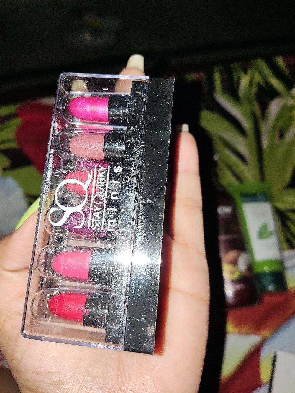 cute product ..all colours are beautiful but some colours look like similar and one thing ,,,quantity is very less only visible lipstick is full quantity and i receive one lipstick on a cap but i fixed it otherwise product quality is good so i give it 5⭐