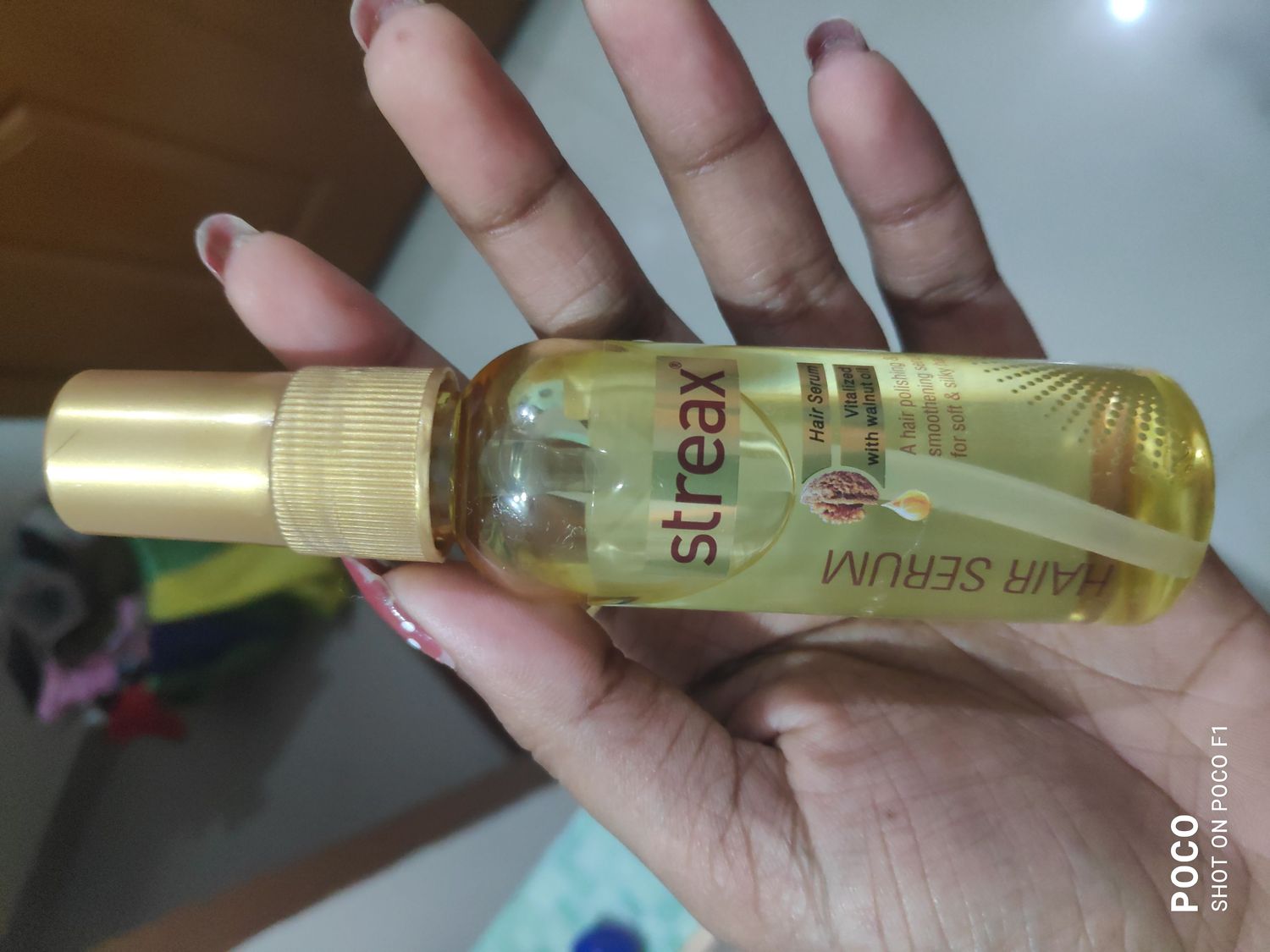 if your hair is dry or frizzy then you must try this hair serum. This is my third bottle. it has the goodness of walnut oil which makes my hair smooth & gives shine. makes my hair frizz free. it can also be used as a heat protecting serum .