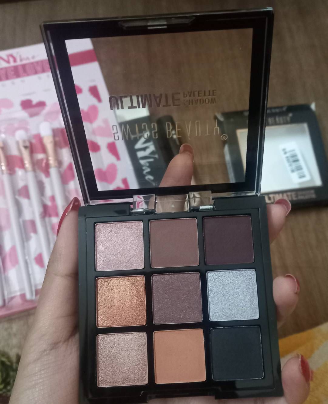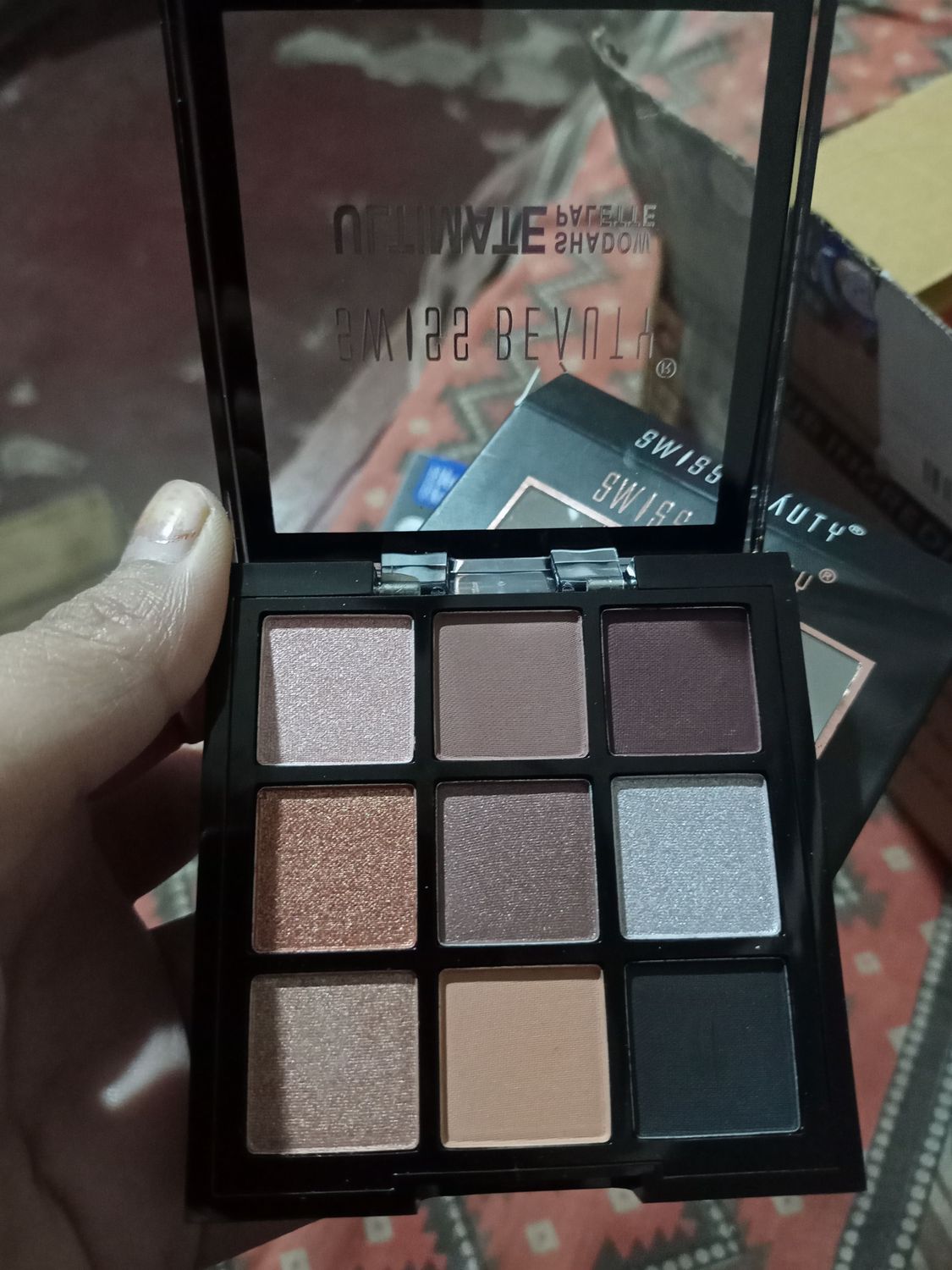 the palette is truly beautiful ❤️ 😍... pigmentation is good and it's beginner friendly with very minimal price.... thanks to purple it cost only 170 rupees 🤩🤩🤩... only 2 shades seems to be less pigmentated but i think it because of my skin shade other wise product is amazing 💗 #swissbeauty_love