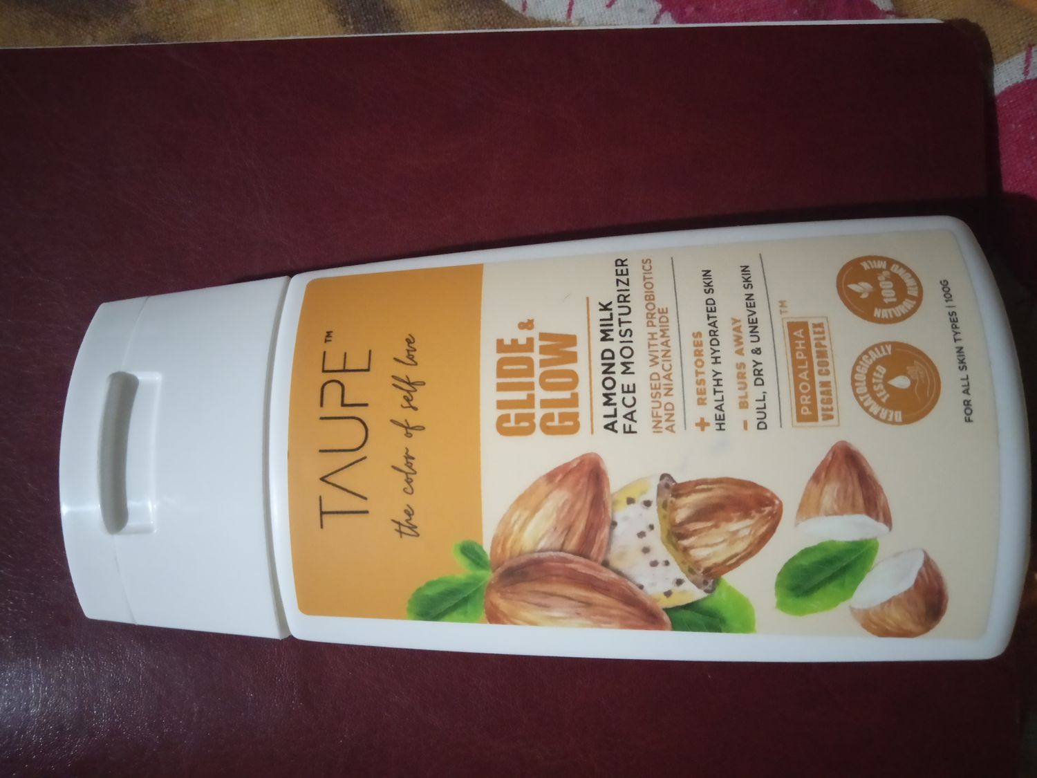 Taupe Glide & Glow 100% Natural Almond Milk Moisturizer with Niacinamide & Probiotics | Fast-Absorbing, Lightweight, Non-Sticky | For All Skin Types | Vegan & Eco-Friendly | 100 ml