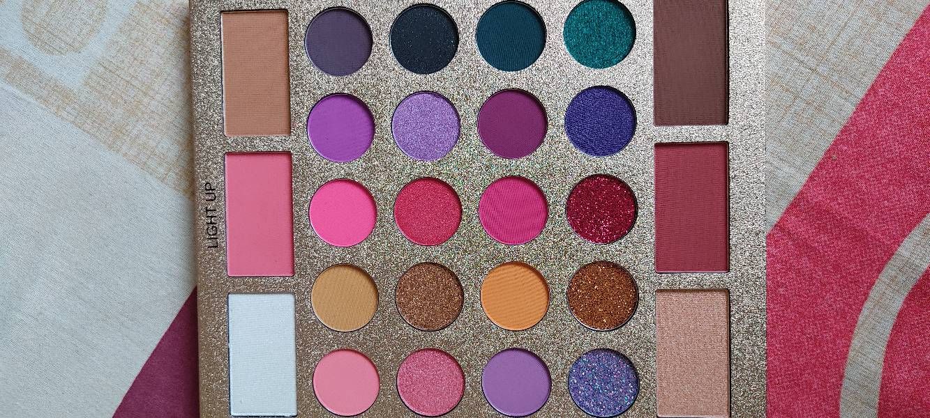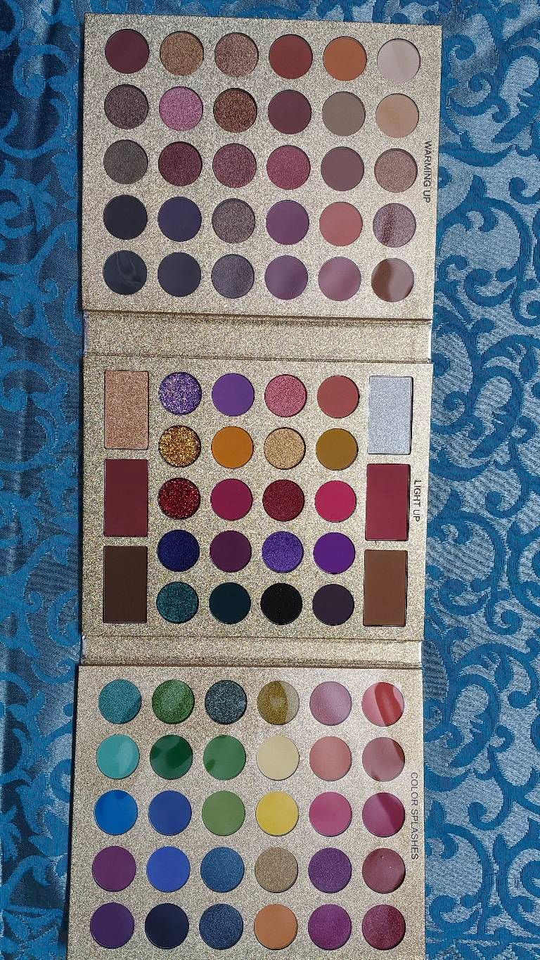 first of all it has all the shades one could ask for the neutrals, the blues, the purples absolutely all. the pigment is very good the glitter shades could be better but if you're a pro you'll work well with it I'll put few swatches pic